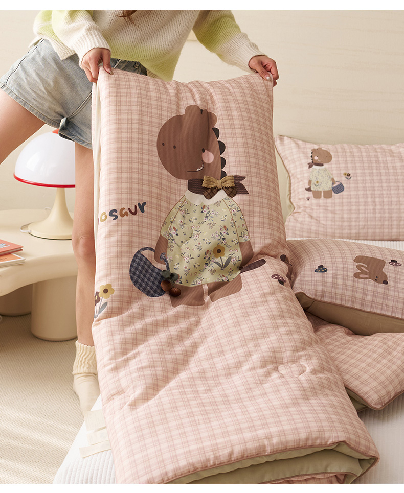 久典家居 2026新款A类全棉双层纱数码定位花型春秋被夏被 小恐龙