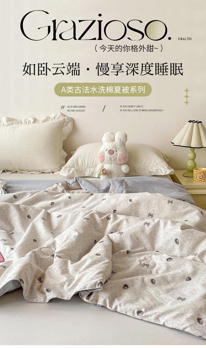 商品名称:纽缦家纺 2026春夏新款A类古法水洗棉夏被夏凉被空调被 初春灰
