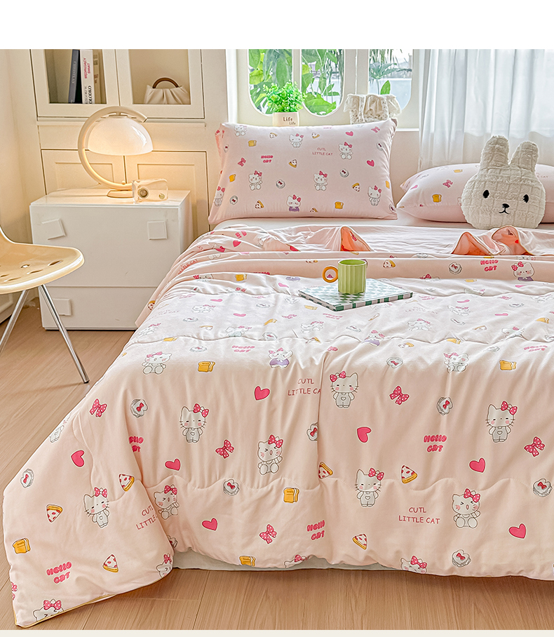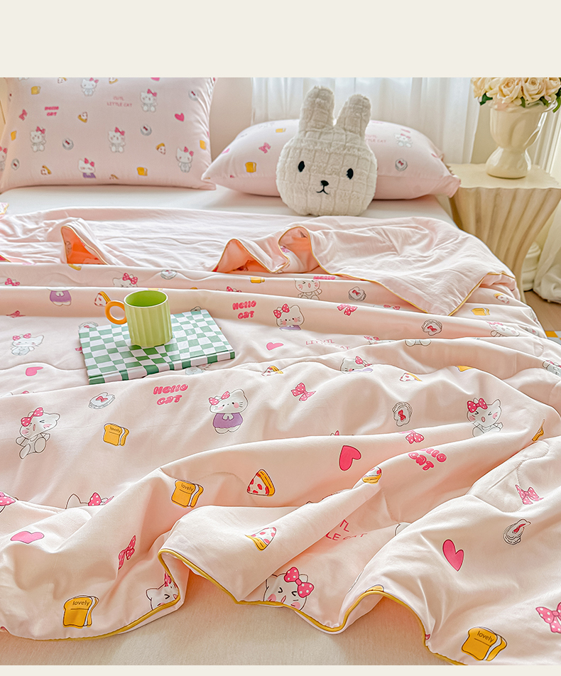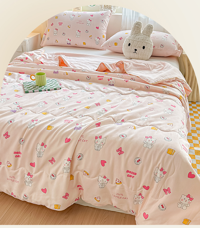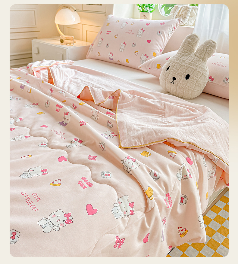 商品名称:招财星家纺 2026新款A类水洗棉皱绉纱夏被空调被印花夏凉被子被芯(带质检报告买家秀) 桃粉凯蒂猫