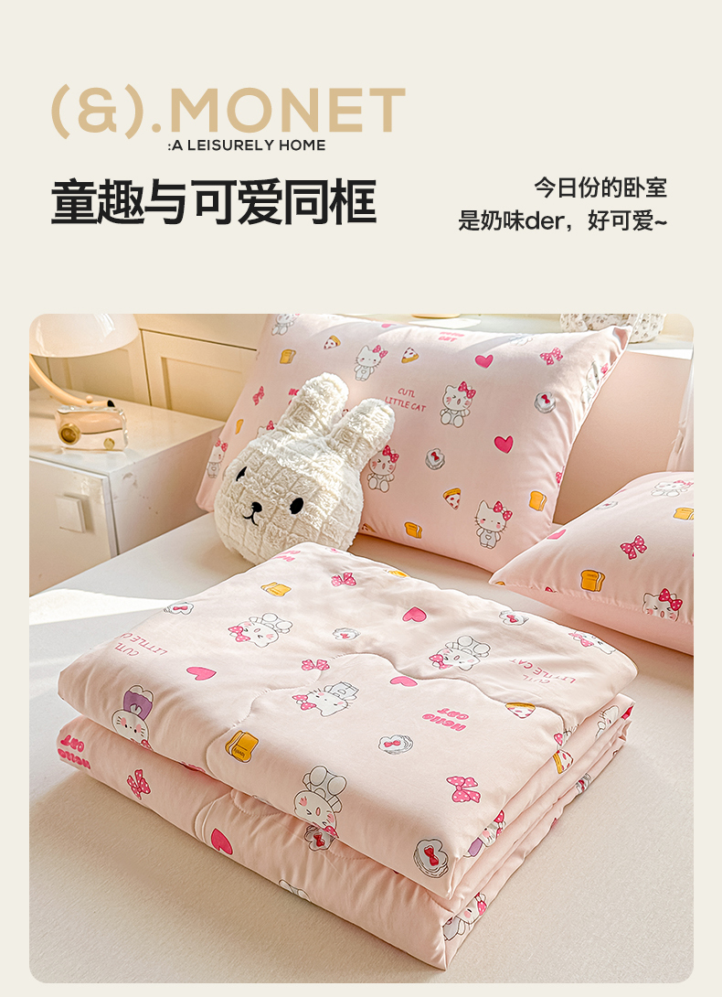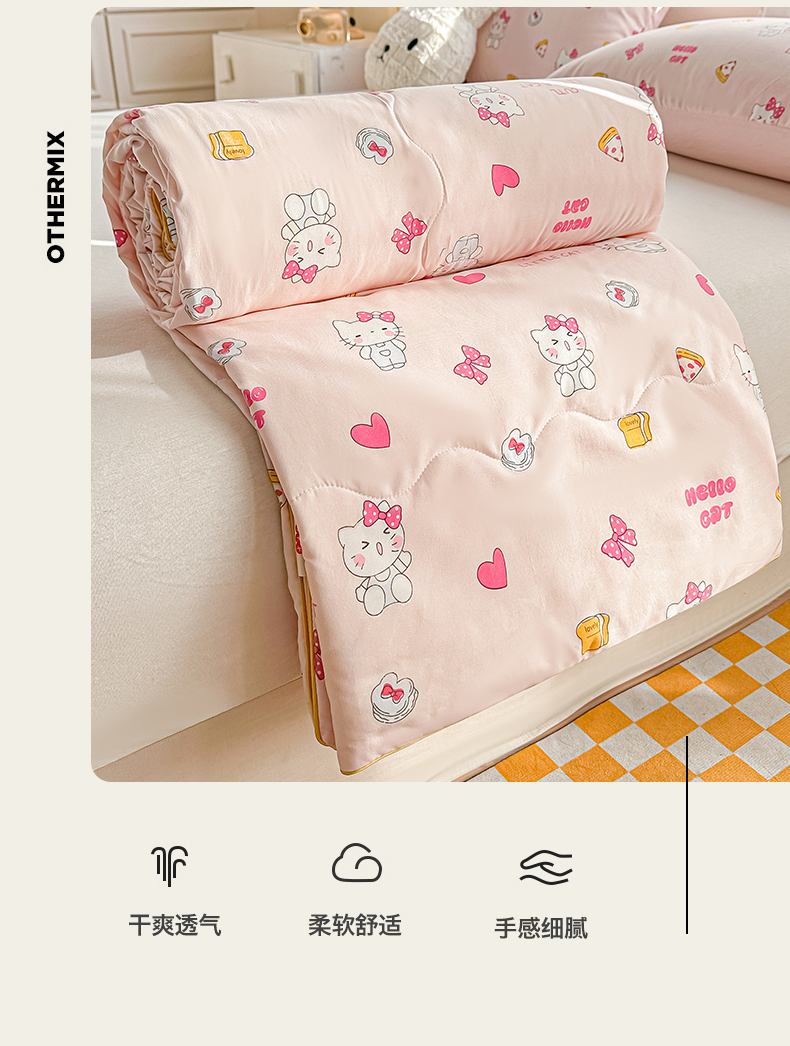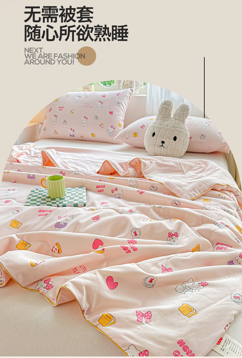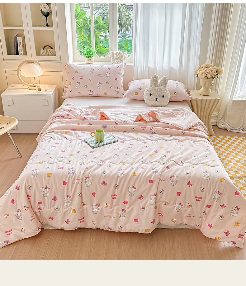 商品名称:招财星家纺 2026新款A类水洗棉皱绉纱夏被空调被印花夏凉被子被芯(带质检报告买家秀) 桃粉凯蒂猫