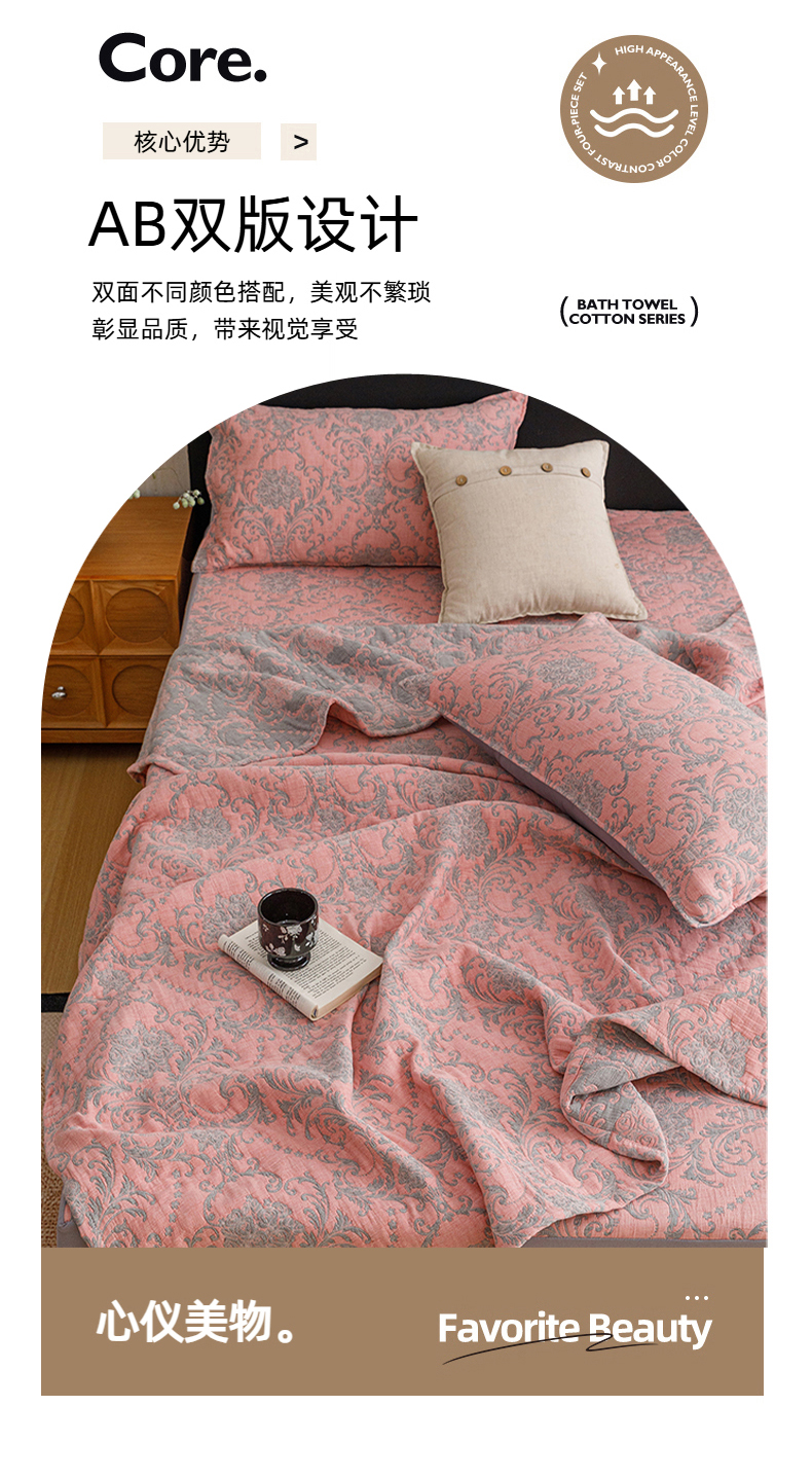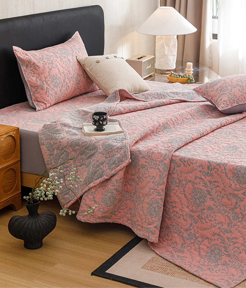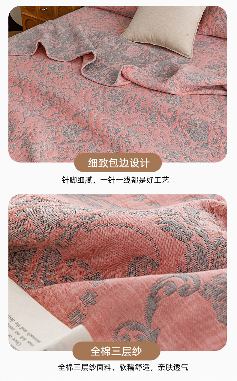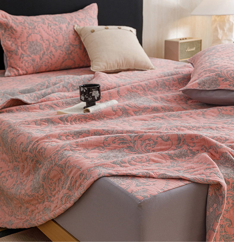 当前位置: 91家纺网 > 商品网购 > 床品套件 > 四件套 > 夏被四件套 > 悦然毛巾被 2026新款全棉三层纱加厚夏被四件套毛巾床笠盖毯毛毯枕套夏凉被空调被 欧韵粉