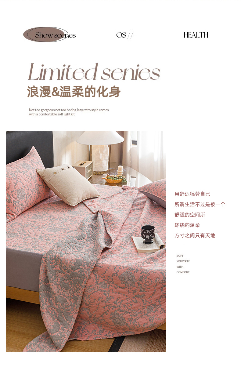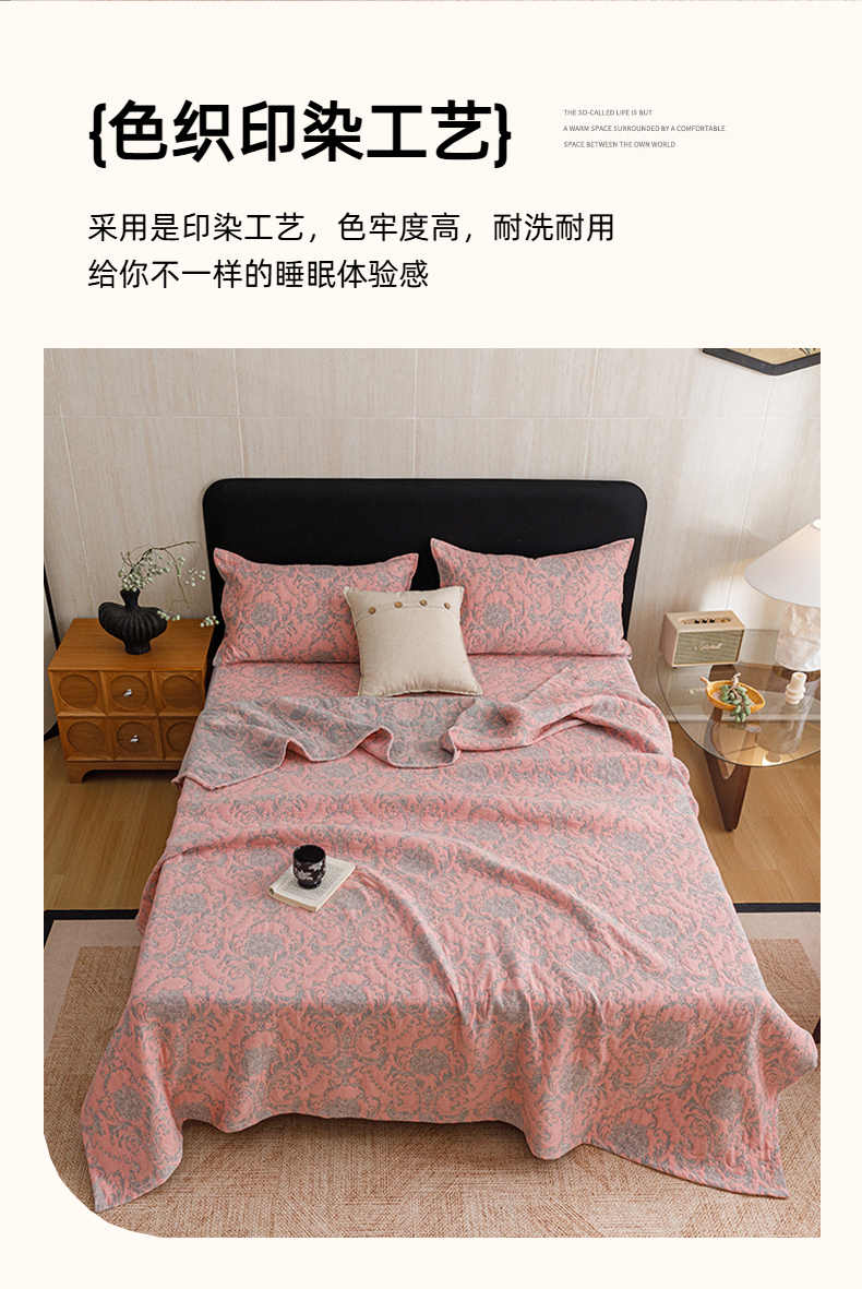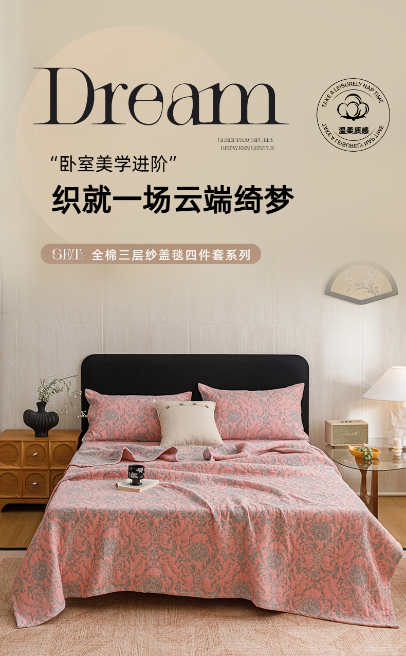 当前位置: 91家纺网 > 商品网购 > 床品套件 > 四件套 > 夏被四件套 > 悦然毛巾被 2026新款全棉三层纱加厚夏被四件套毛巾床笠盖毯毛毯枕套夏凉被空调被 欧韵粉