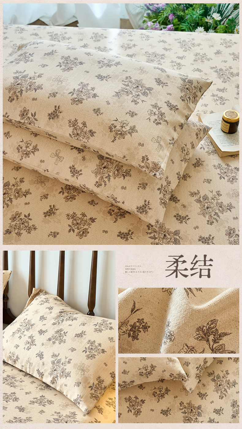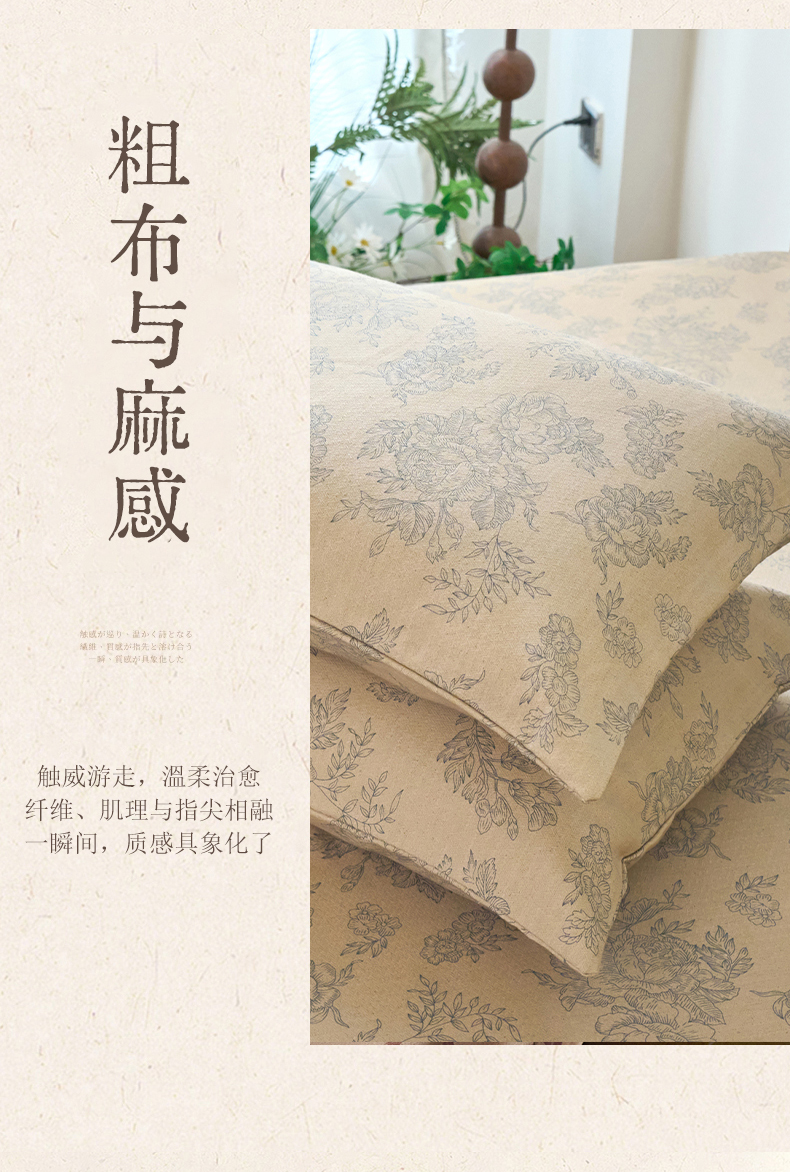 (总)春皖家纺 2026春夏新款棉麻老粗布系列单枕套 枕套单件,丹青,蝶影,琉璃,墨香,浅蔓,柔结,雾花,樱落