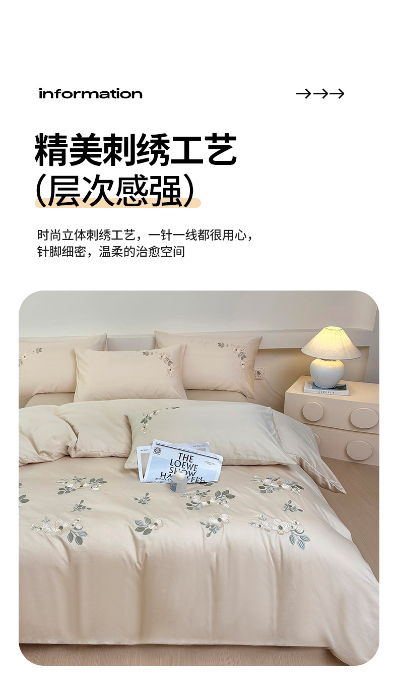 当前位置: 91家纺网 > 商品网购 > 床品套件 > 四件套 > 长绒棉四件套 > 合欢(原天一阁) 2026春夏新款50s双股长绒棉100支刺绣全棉纯棉四件套礼盒装 清欢-香槟金