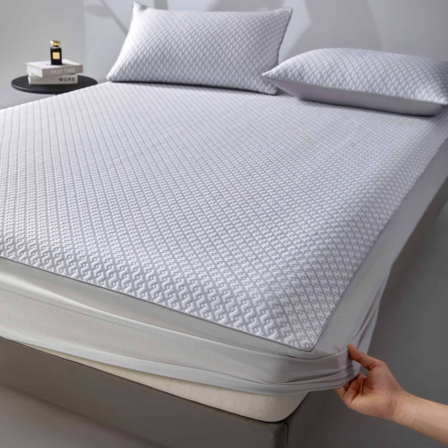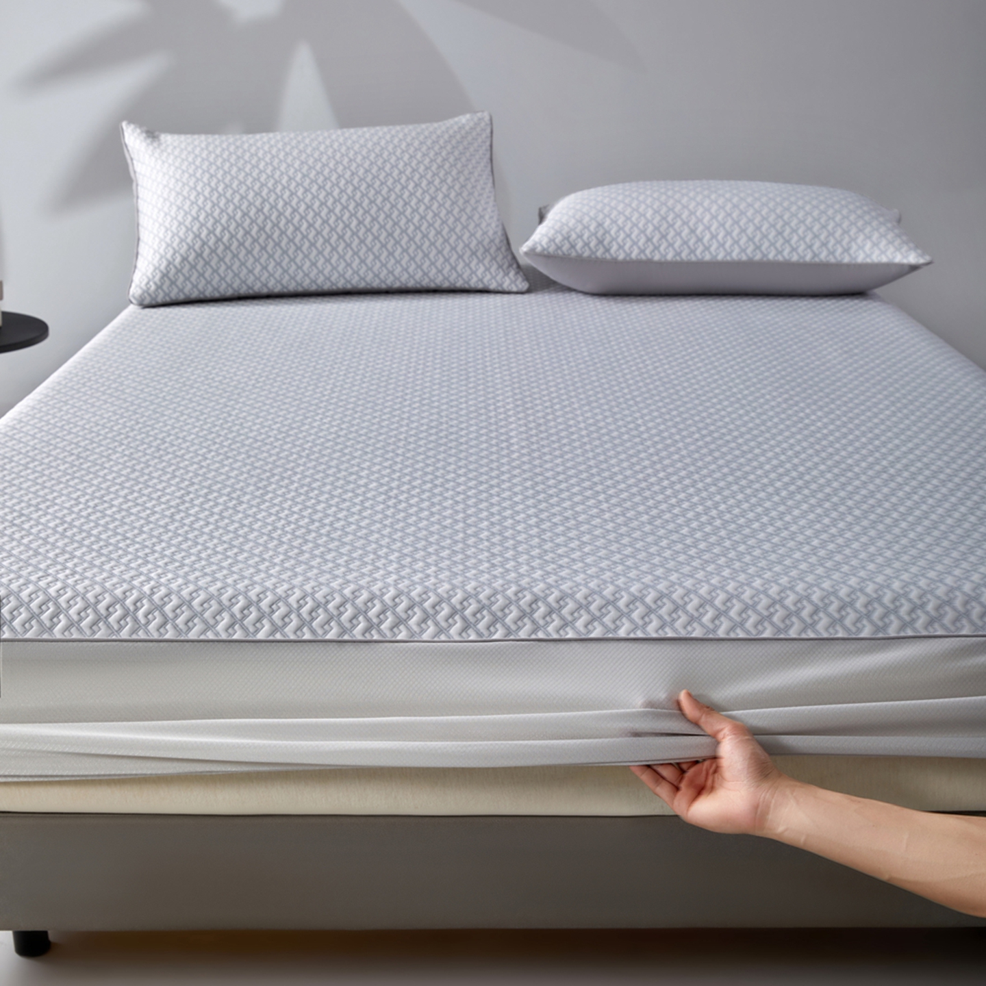商品名称:满座家居 2026新款乙纶高冰凉感高分子PE凉席床笠款冰丝席三件套 锦驭