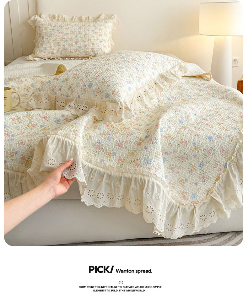 当前位置: 91家纺网 > 商品网购 > 床品套件 > 四件套 > 全棉普通四件套 > 羽爱家纺 2026新款全棉水洗韩版花边床盖四件套 花梦芬芳
