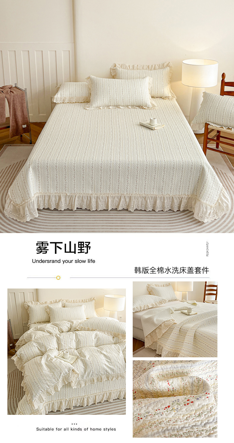 当前位置: 91家纺网 > 商品网购 > 床品套件 > 四件套 > 全棉普通四件套 > 羽爱家纺 2026新款全棉水洗韩版花边床盖四件套 月光摇篮