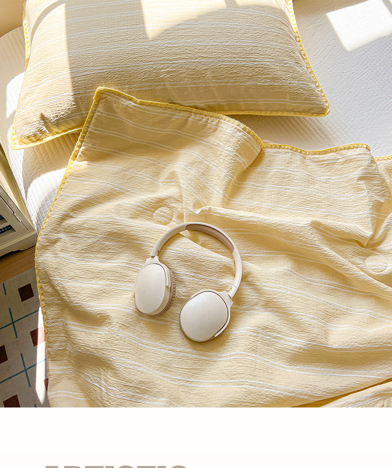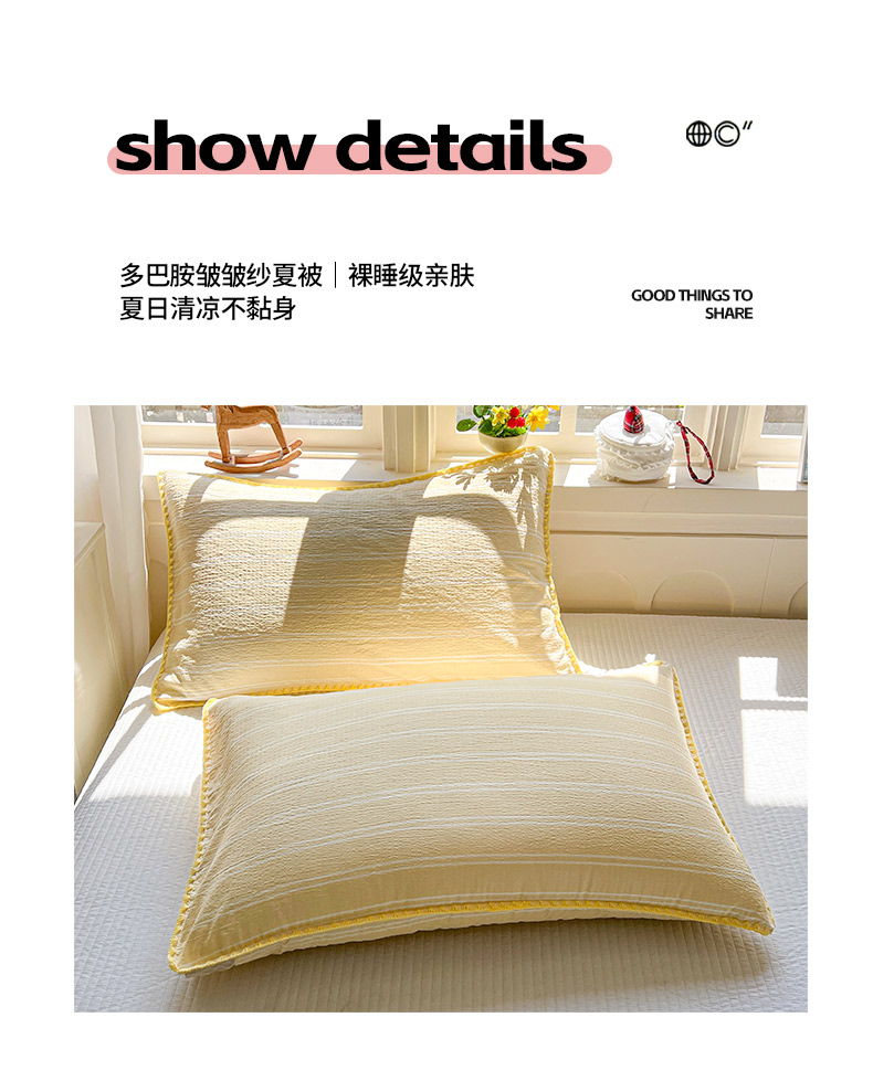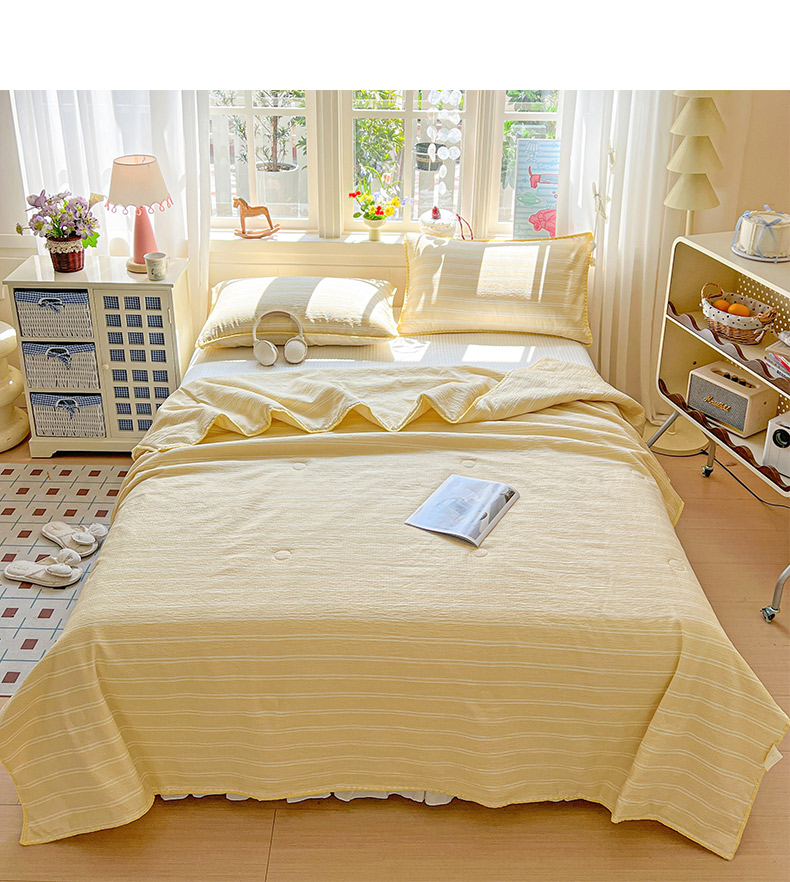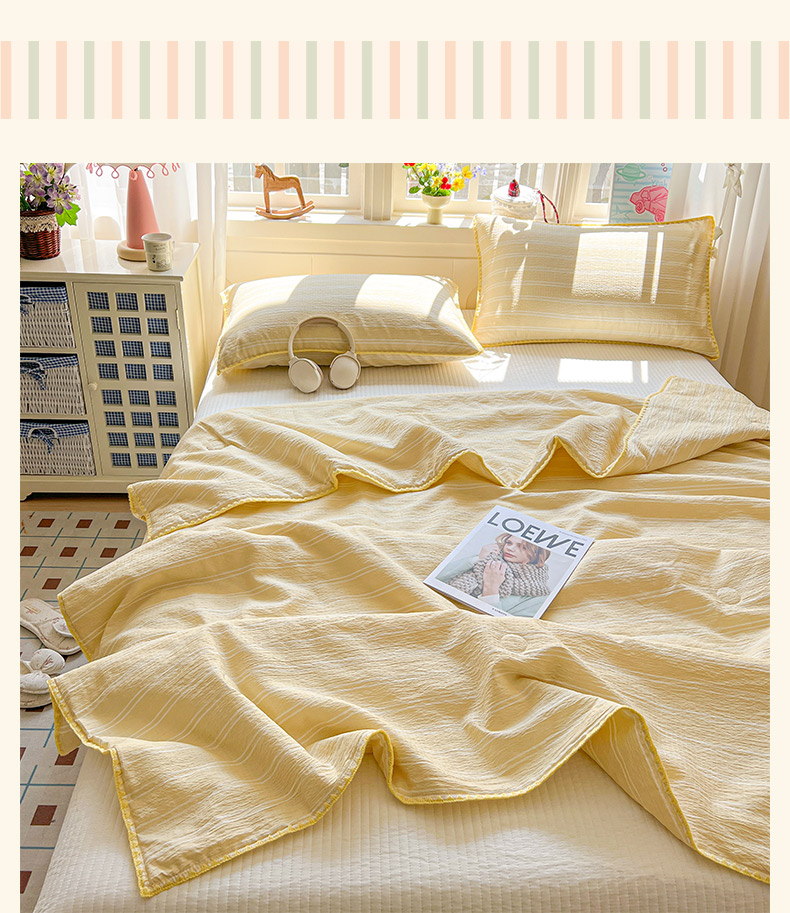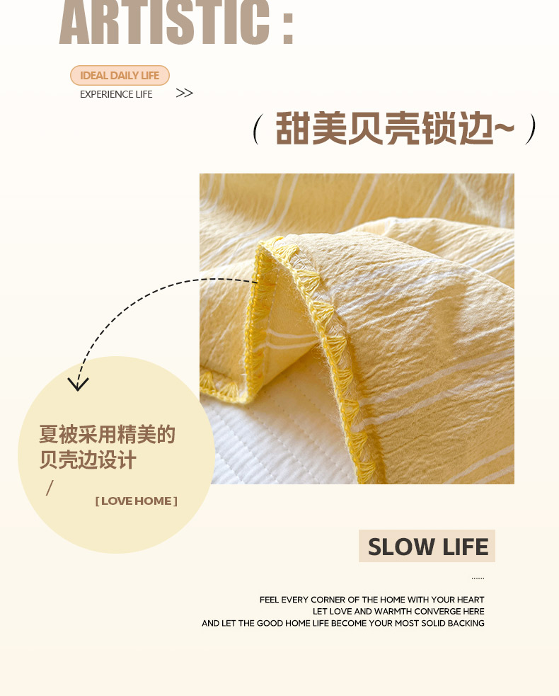 商品名称:鑫利来家纺 2026新款日系多巴胺皱皱纱贝壳绣夏被夏凉被空调被 春染-米黄