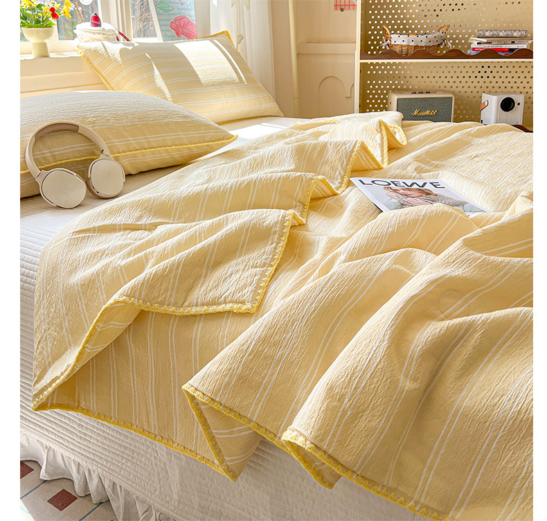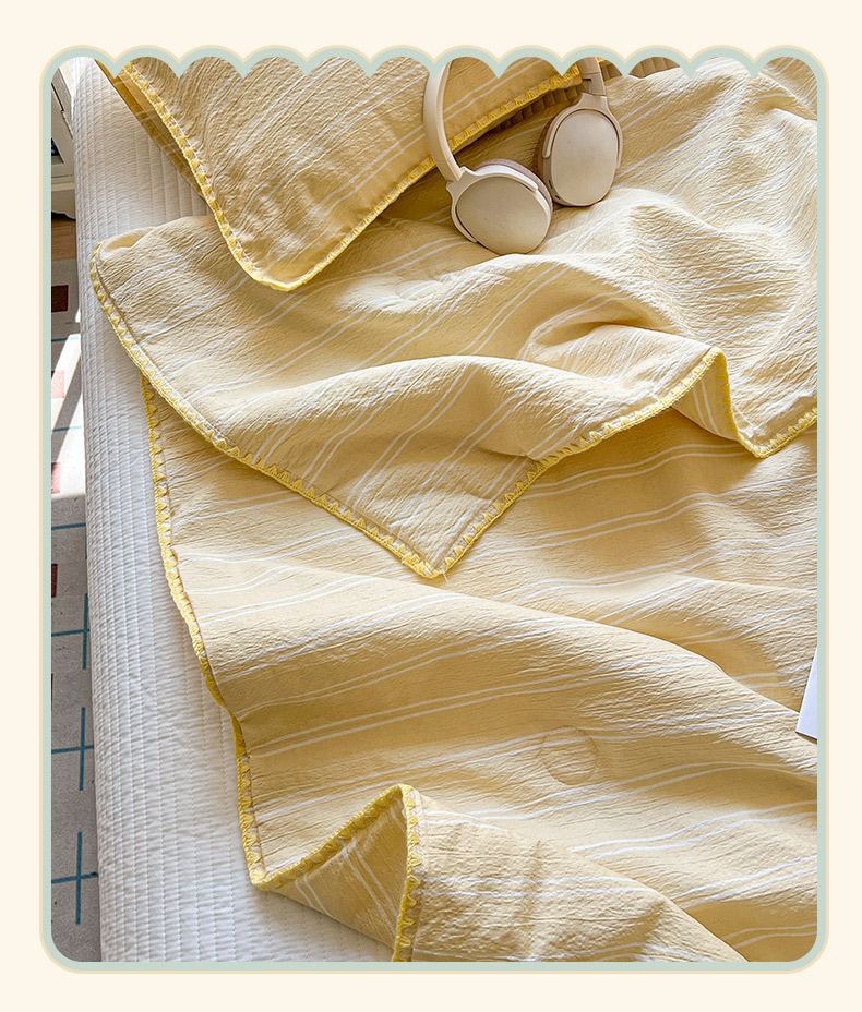 鑫利来家纺 2026新款日系多巴胺皱皱纱贝壳绣夏被夏凉被空调被 春染-米黄