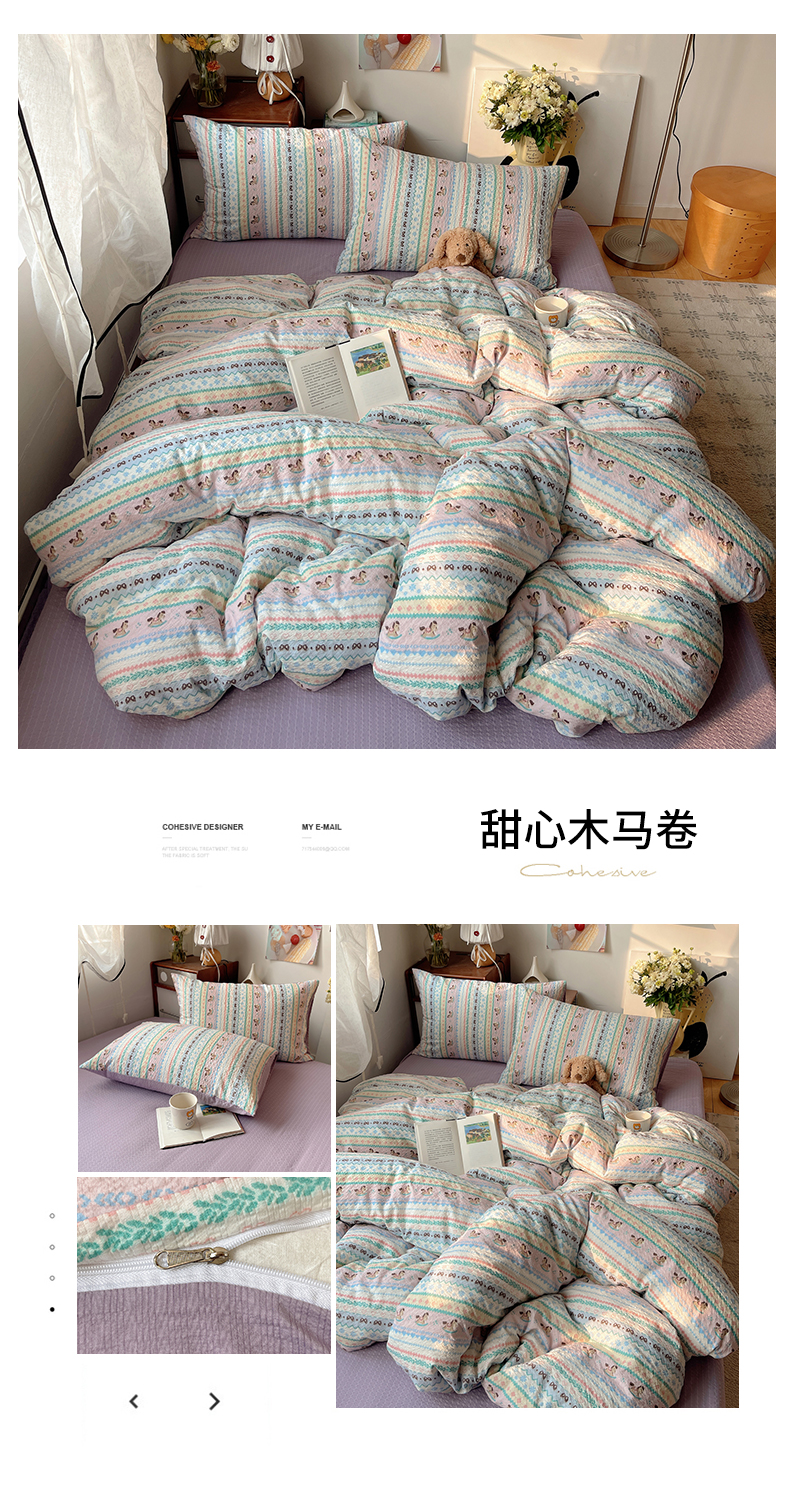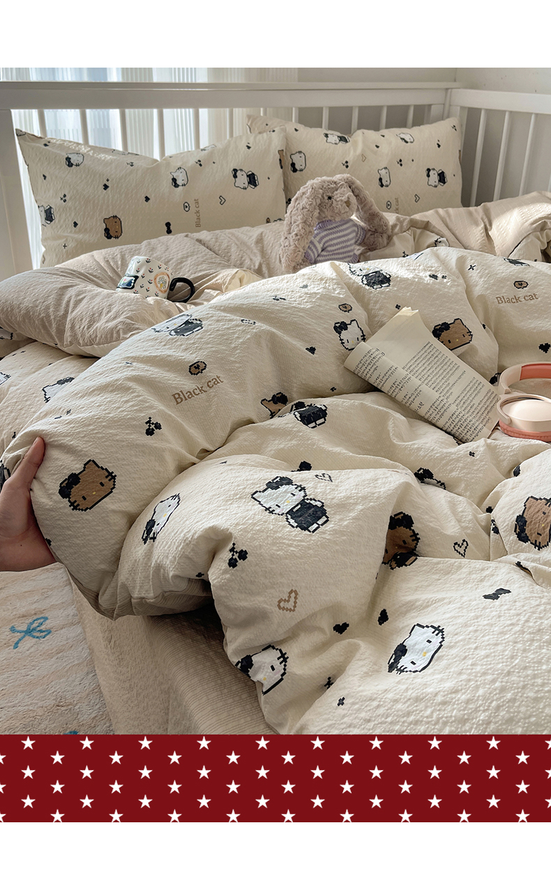 当前位置: 91家纺网 > 商品网购 > 床品套件 > 四件套 > 其它四件套 > 贝扬思家纺 2026新款高品质A类泡芙纱普通款四件套-110g-(软软糯糯小红书推荐~) 甜喵块块