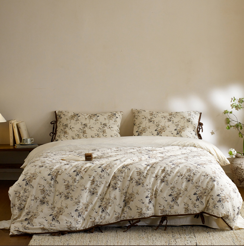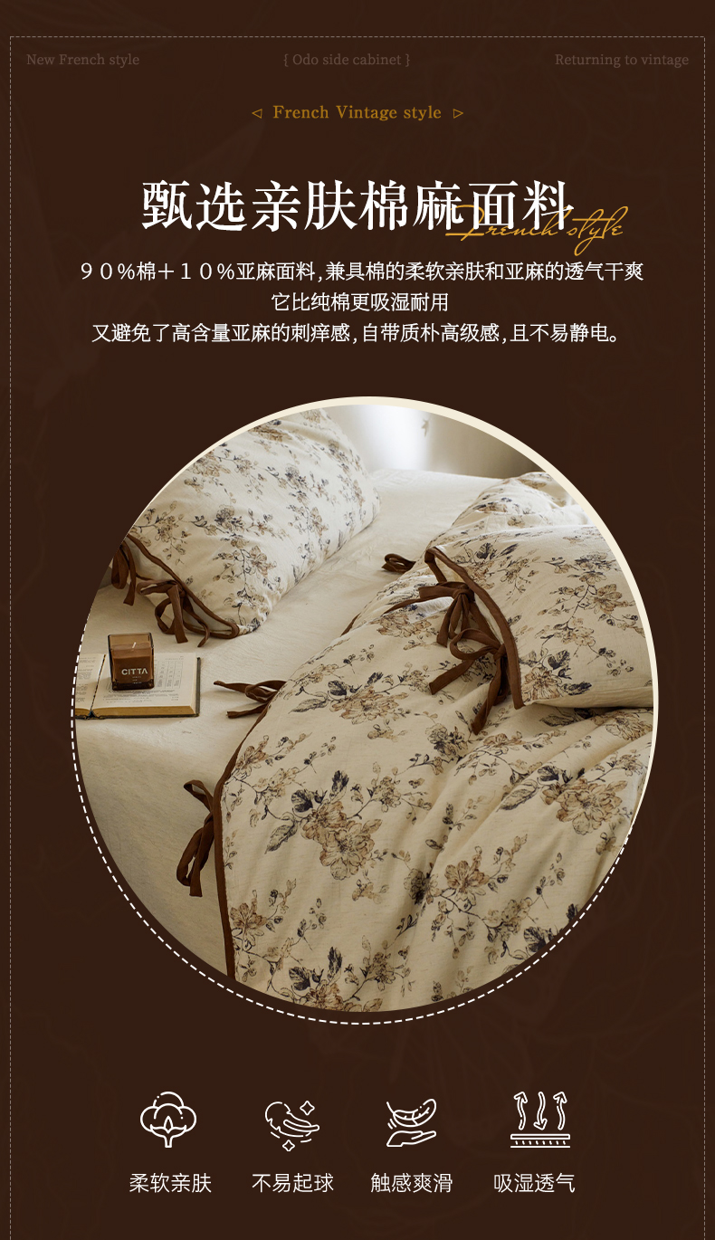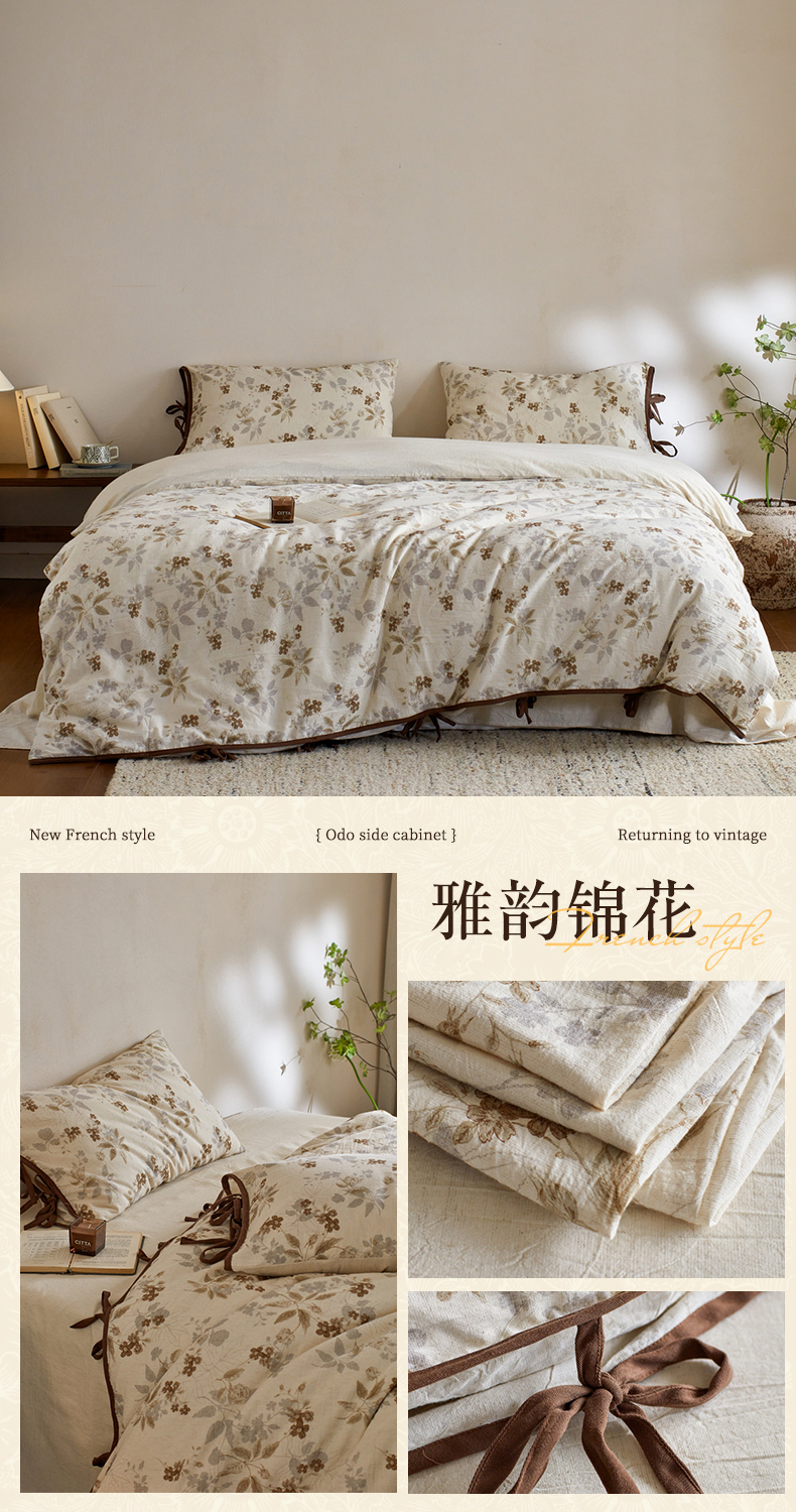 (总)由丽家纺 2026新款法式复古风棉麻绑带款四件套,古韵繁花,春枝红荔,黑绒花,剪影-白,剪影-绿,绿野仙踪,千幻梦,秀丽春色,雅韵锦花