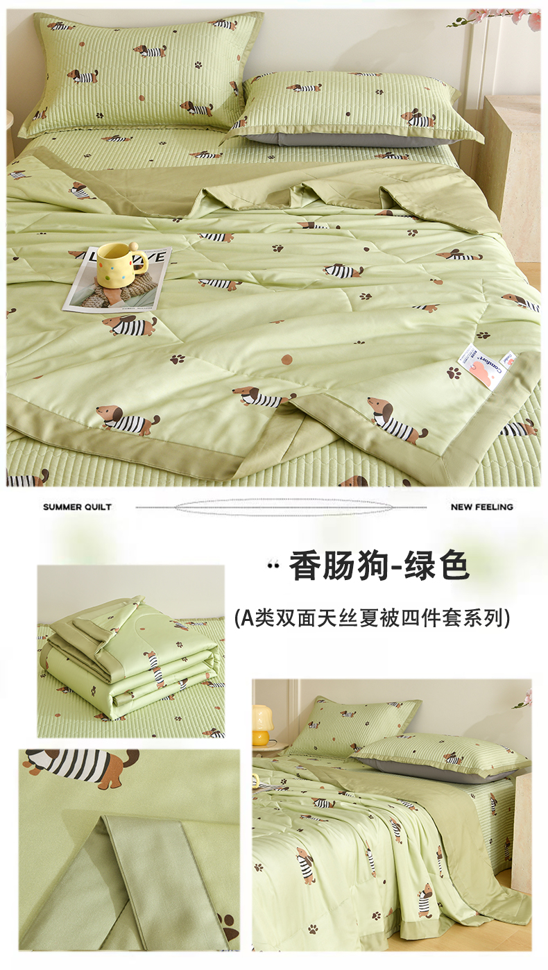 (总)金艾草 2026新款莫代尔天丝印花夏被床盖四件套三件套,蘑菇派,粉色-小象,拉布布-蓝,森林奇遇,山茶花-灰色,山茶花-紫,山菊-灰,桃粉,甜果-绿,香肠狗-绿色,熊熊-蓝,伊特花园