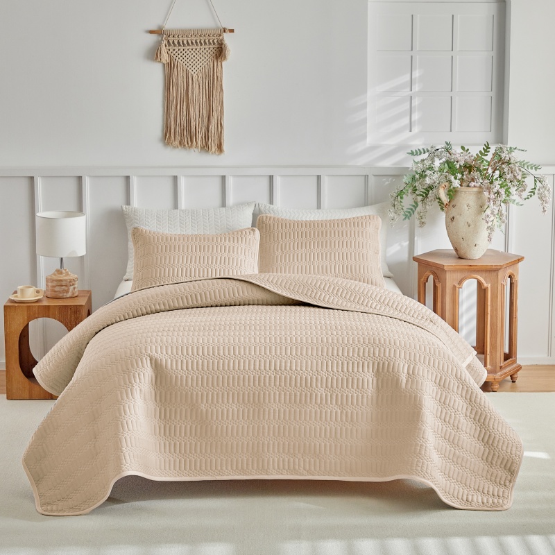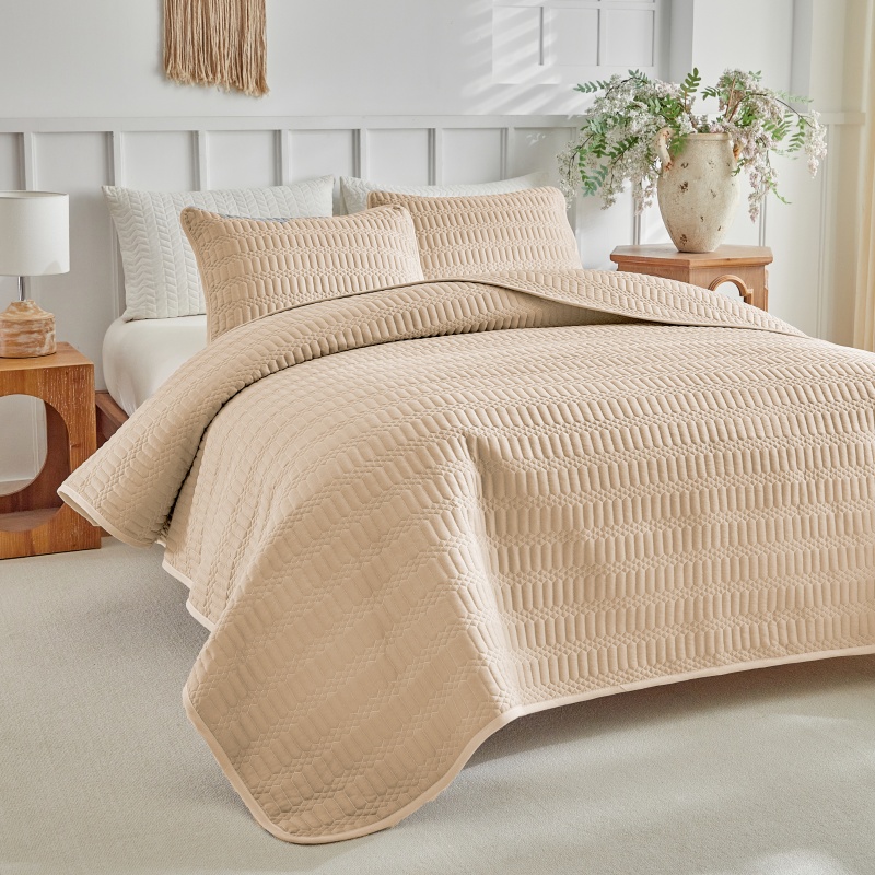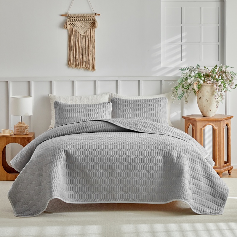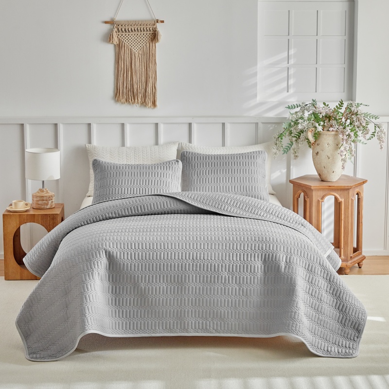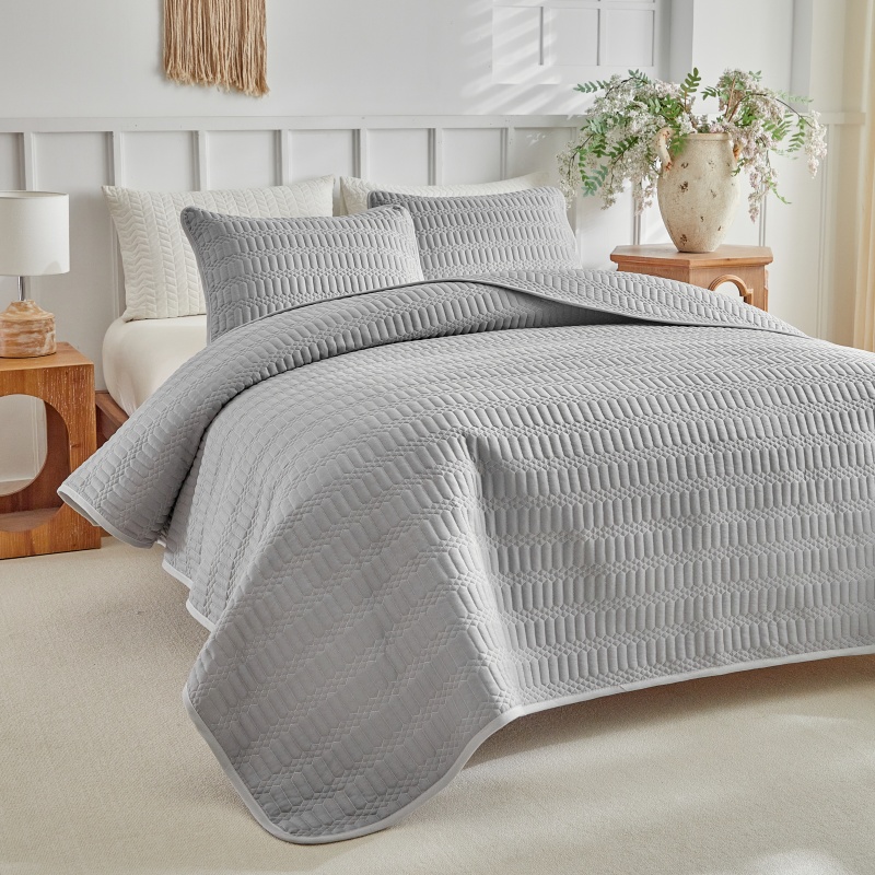 (总)温宁 2026年素色床盖三件套 国外薄被第一批--方糖 跨境,外贸,亚马逊,shein,temu,方糖-灰色,方糖-绿色,方糖-米色