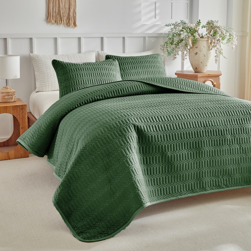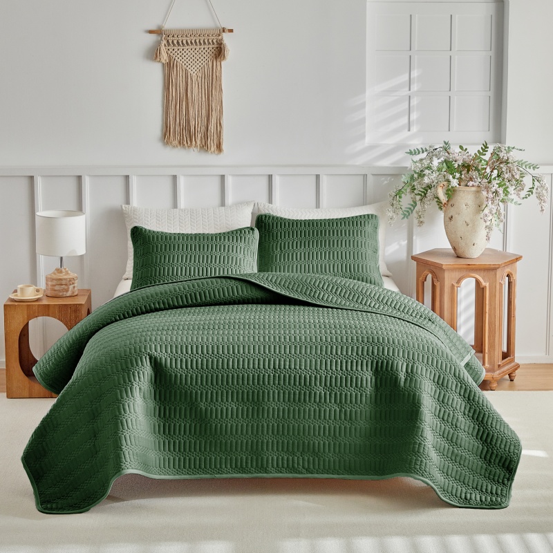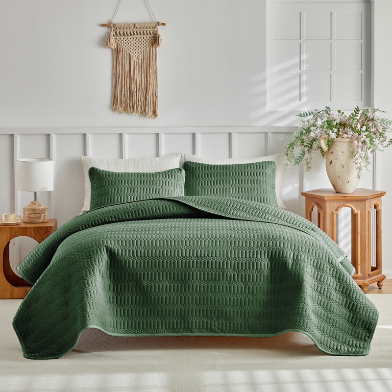 (总)温宁2025新款跨境外贸专供斜方格床盖,绿色,米色,银灰