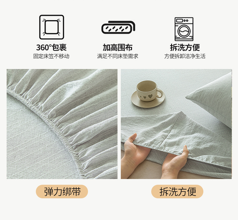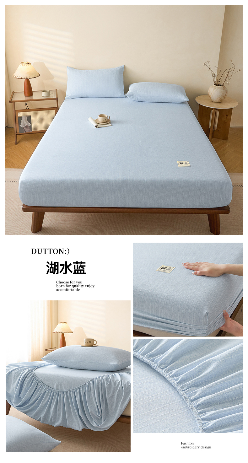 (总)蓝极人 2026新款提花色织水洗麻床笠,CL抹茶绿,CL晨曦黄,CL湖水蓝,CL玫瑰粉,CL葡萄青,CL烟灰,LC牛仔蓝