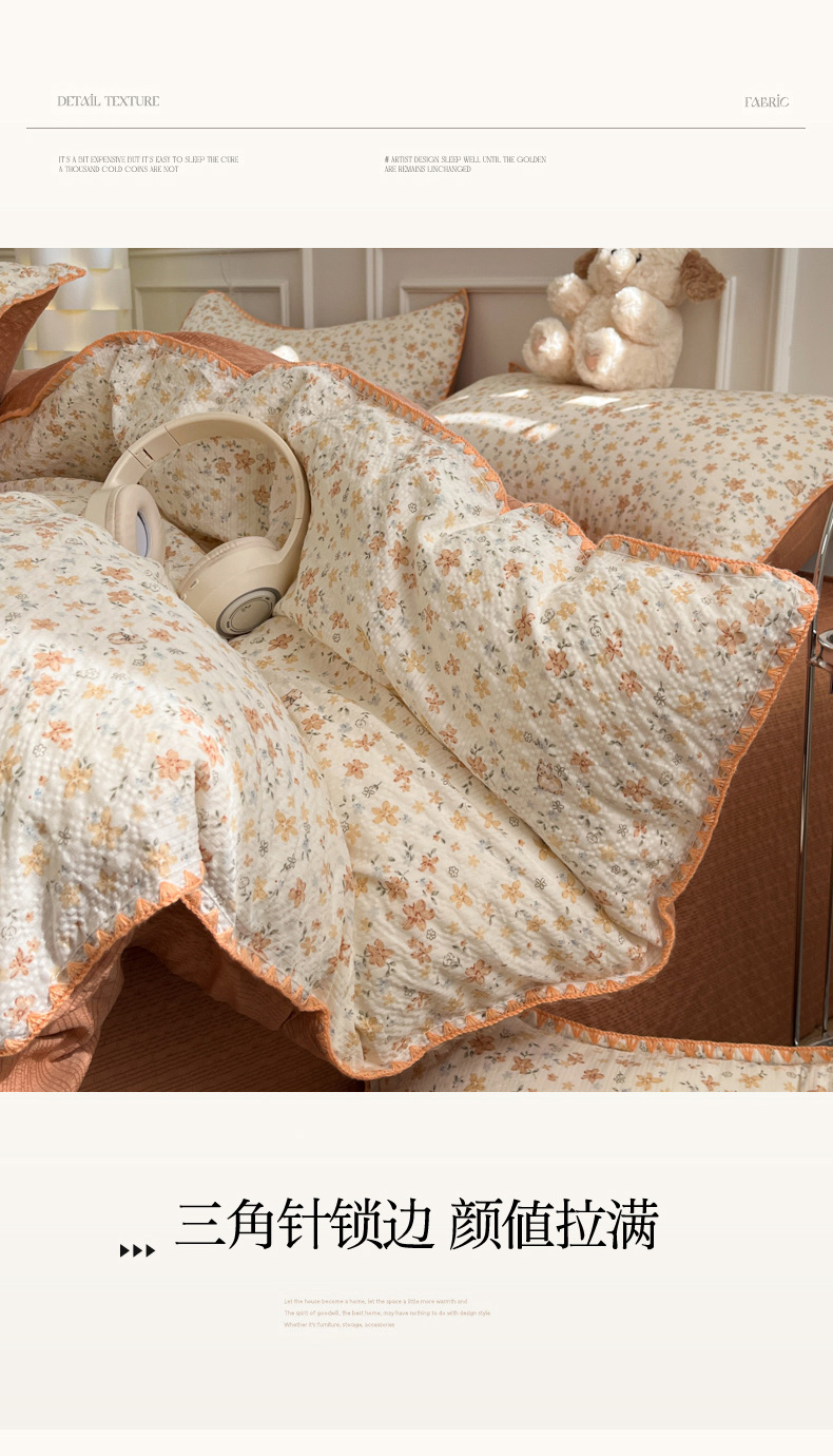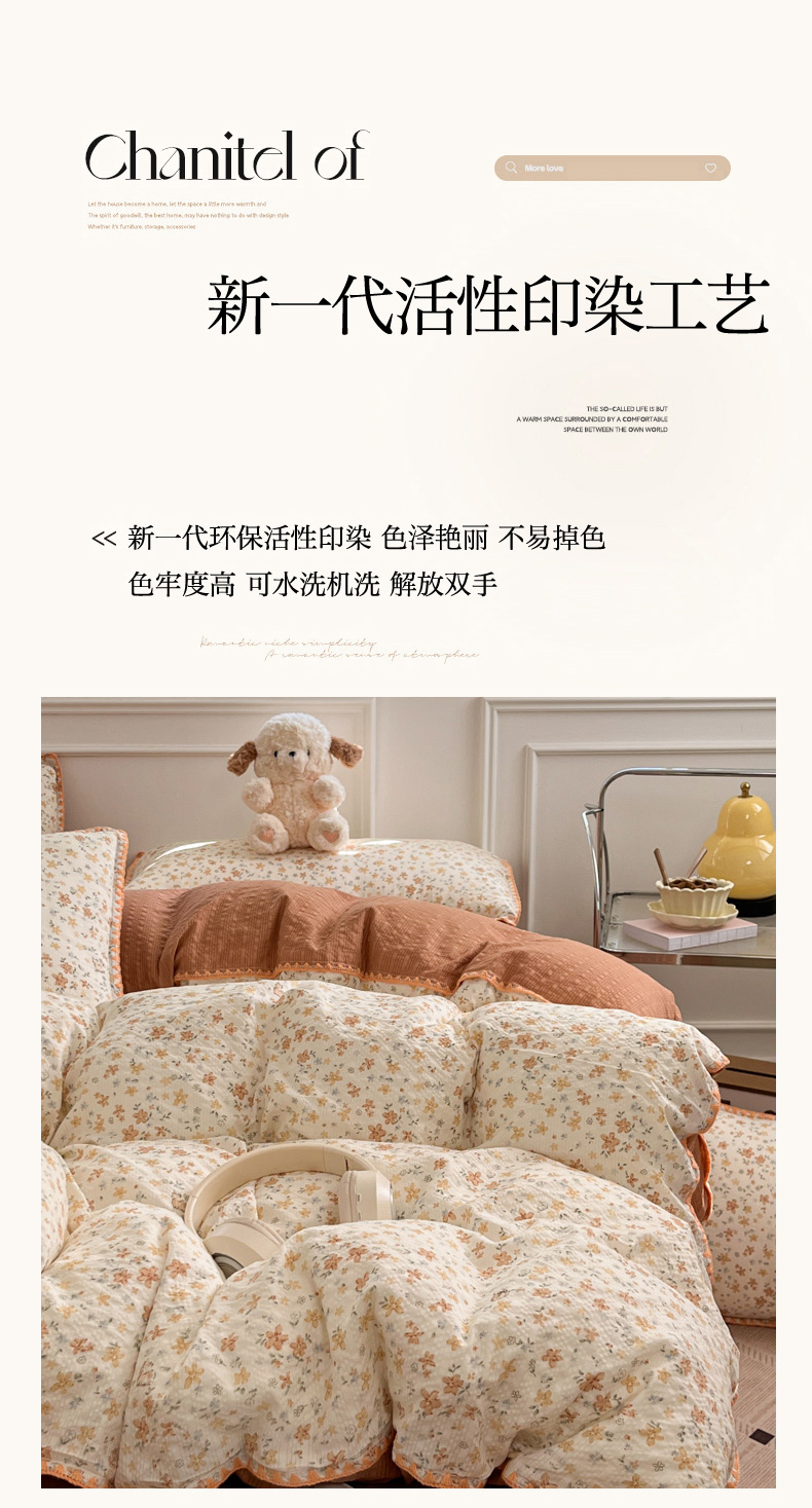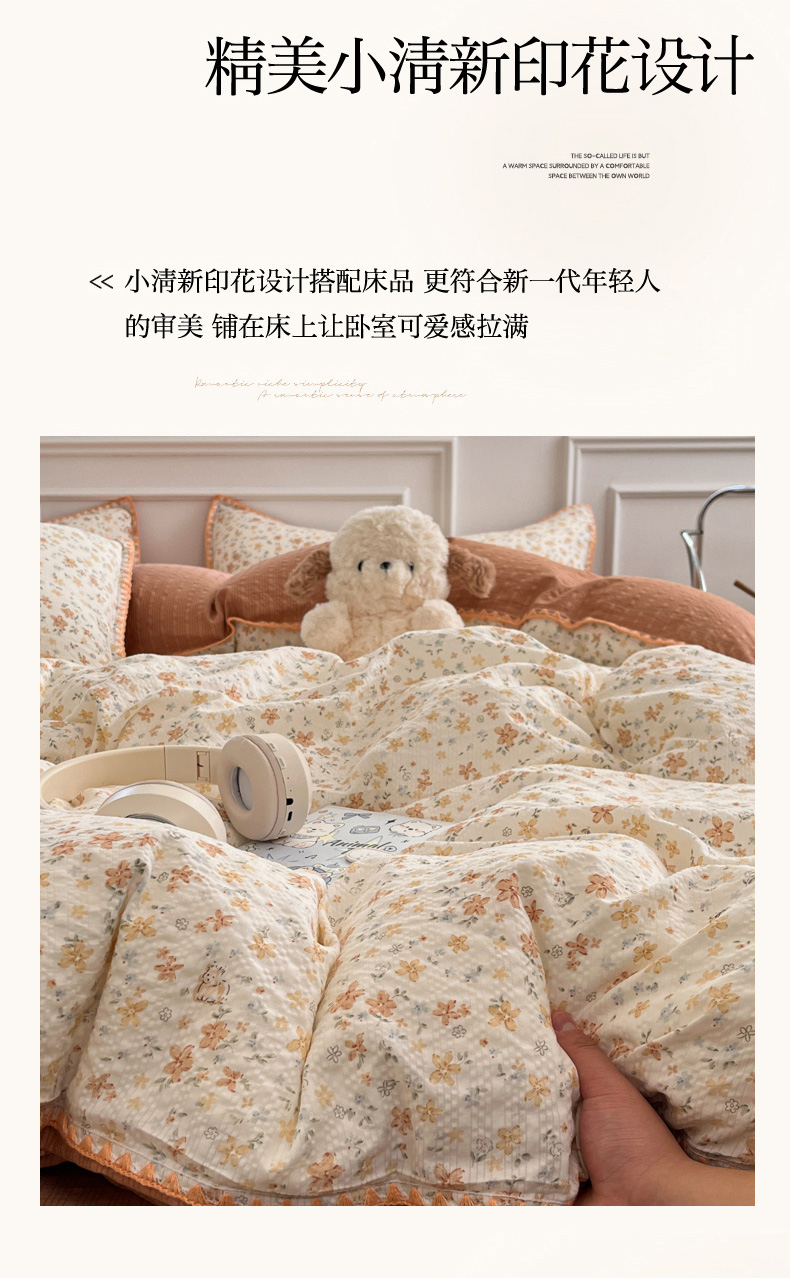 当前位置: 91家纺网 > 商品网购 > 床品套件 > 四件套 > 其它四件套 > 慕澄家纺 2026新款小清新印花泡芙纱贝壳边四件套 奶橘小甜梦