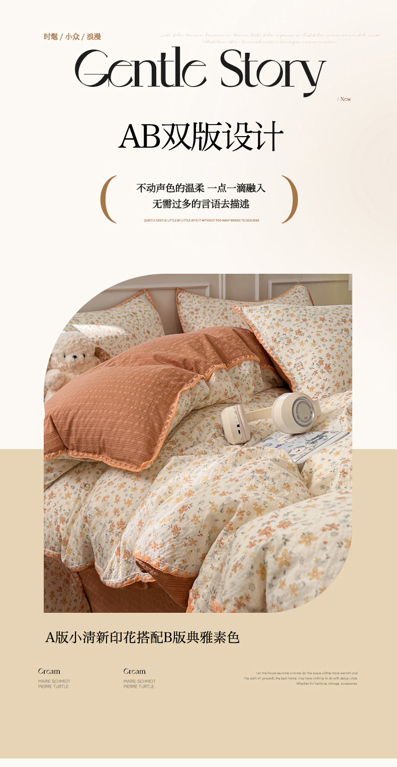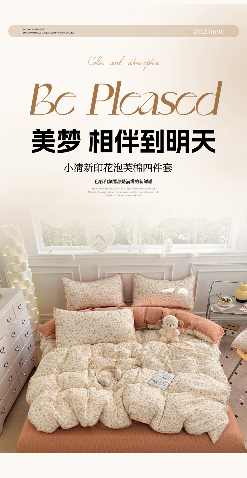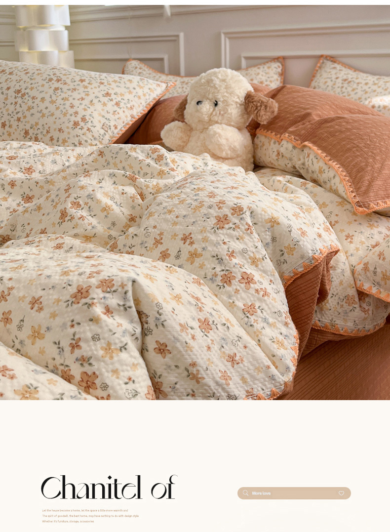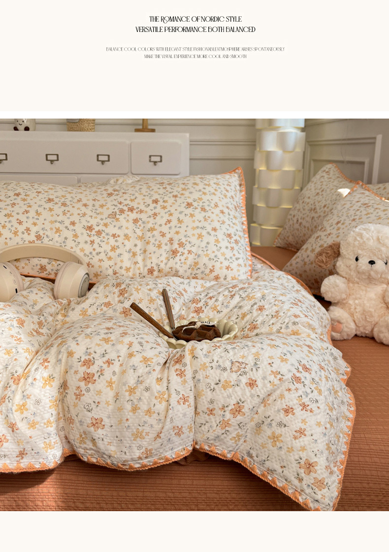 当前位置: 91家纺网 > 商品网购 > 床品套件 > 四件套 > 其它四件套 > 慕澄家纺 2026新款小清新印花泡芙纱贝壳边四件套 奶橘小甜梦