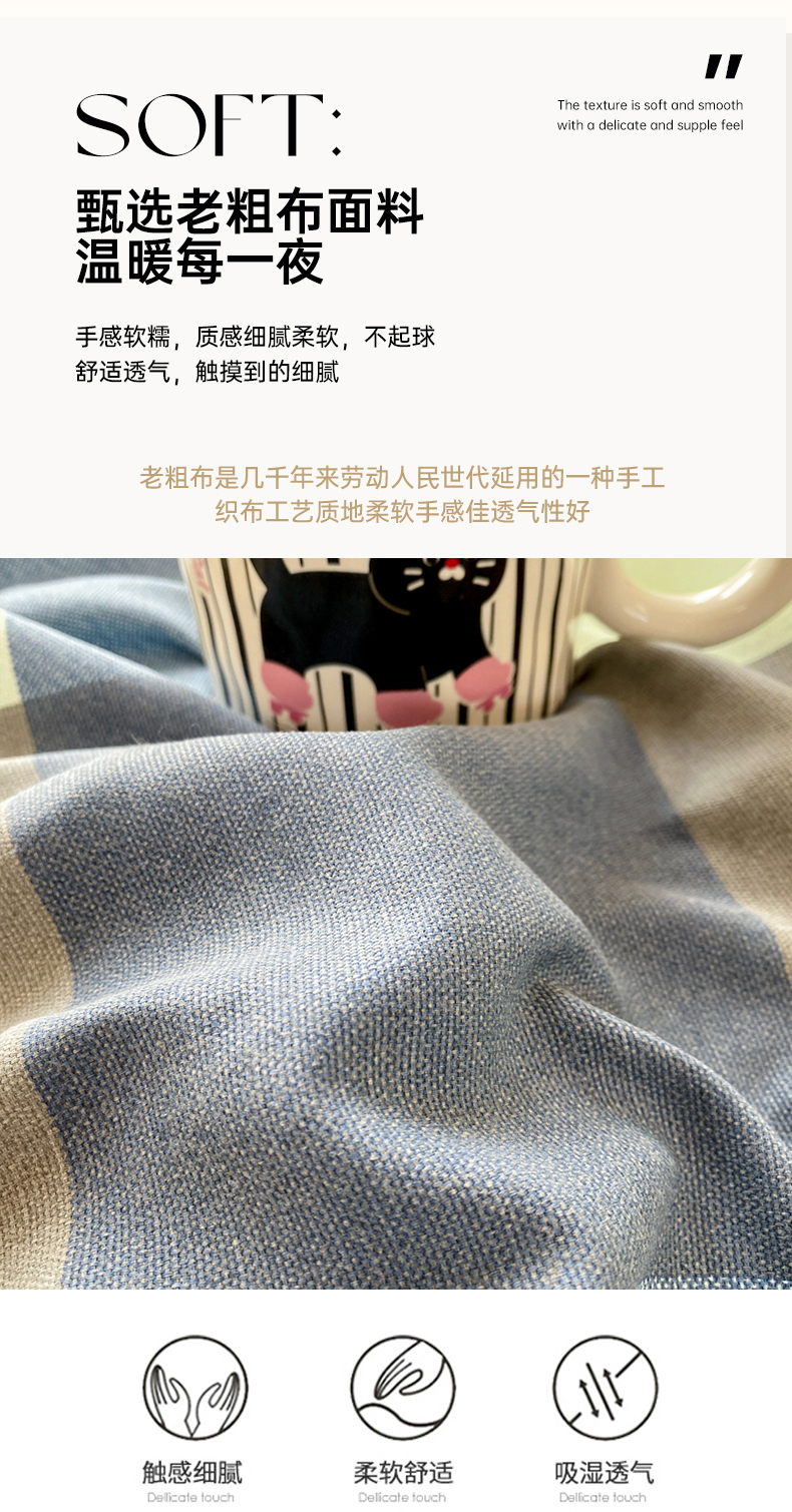 漫仙阁家纺 2026新款老粗布床单系列 蓝格