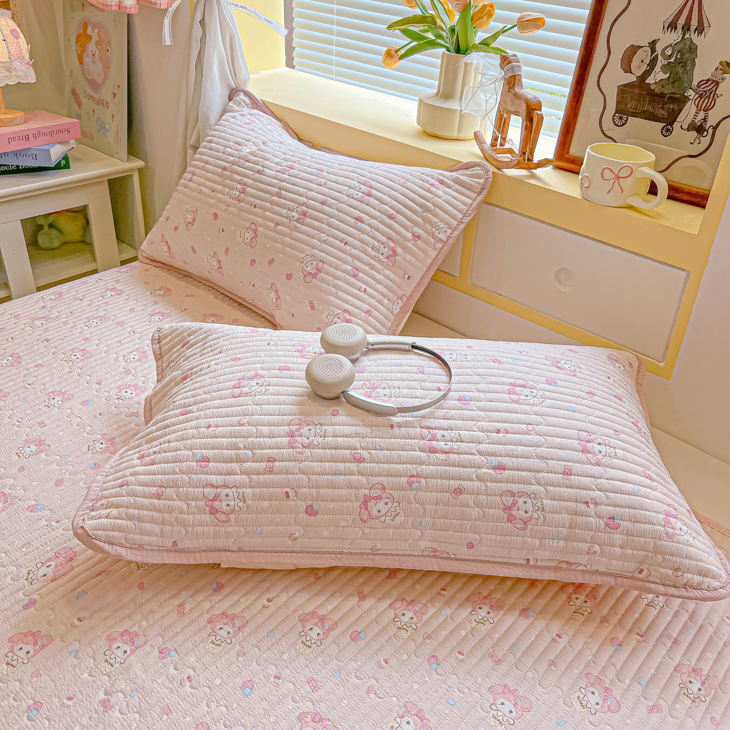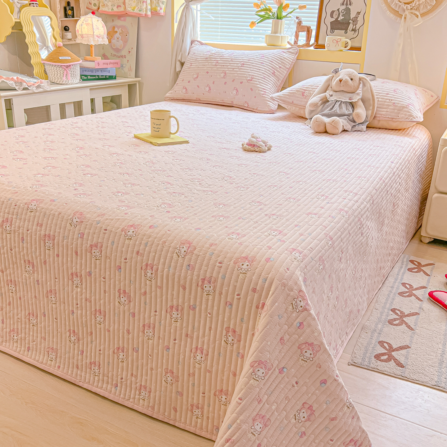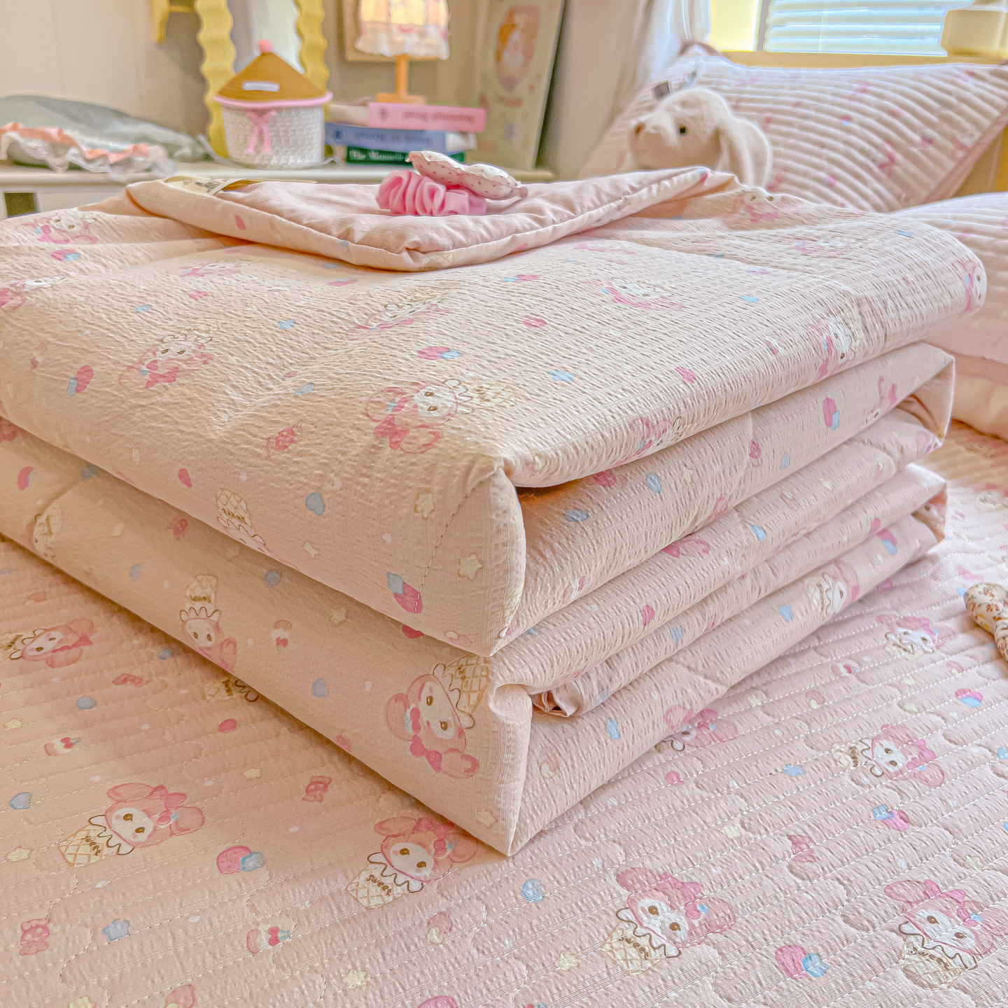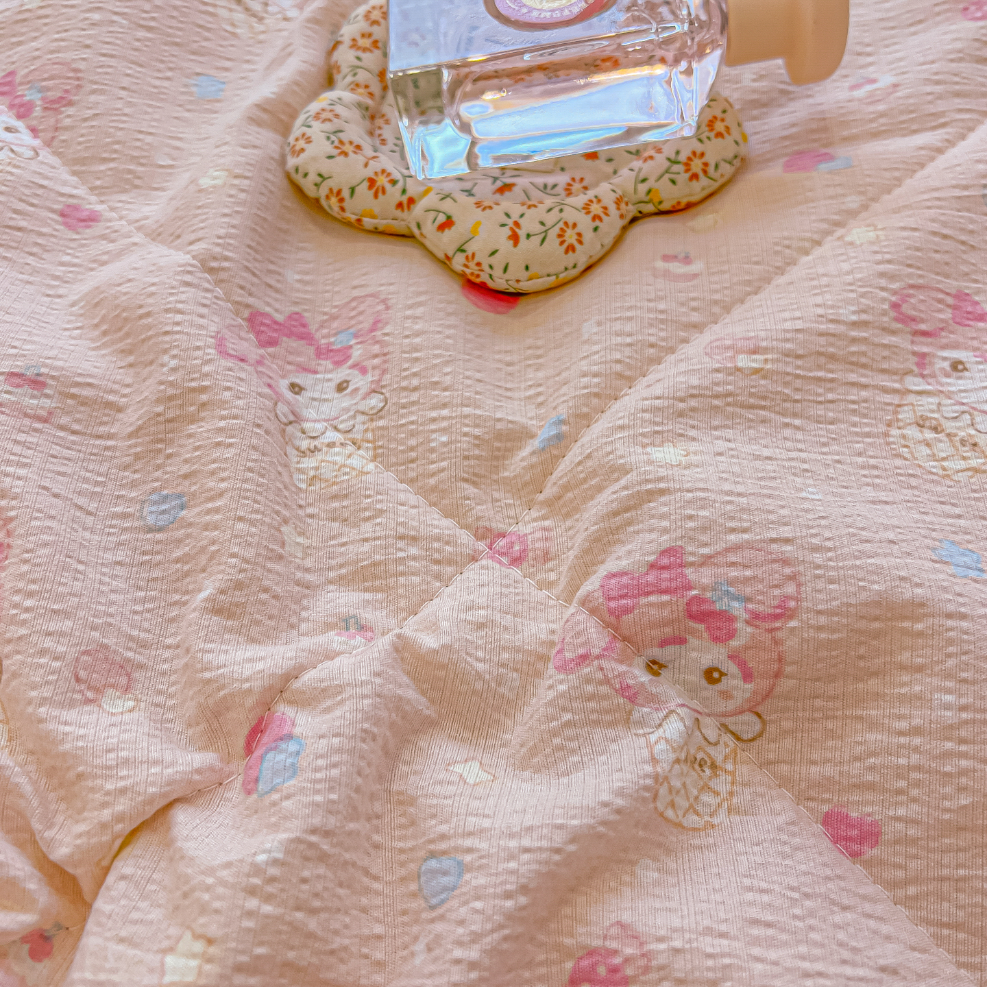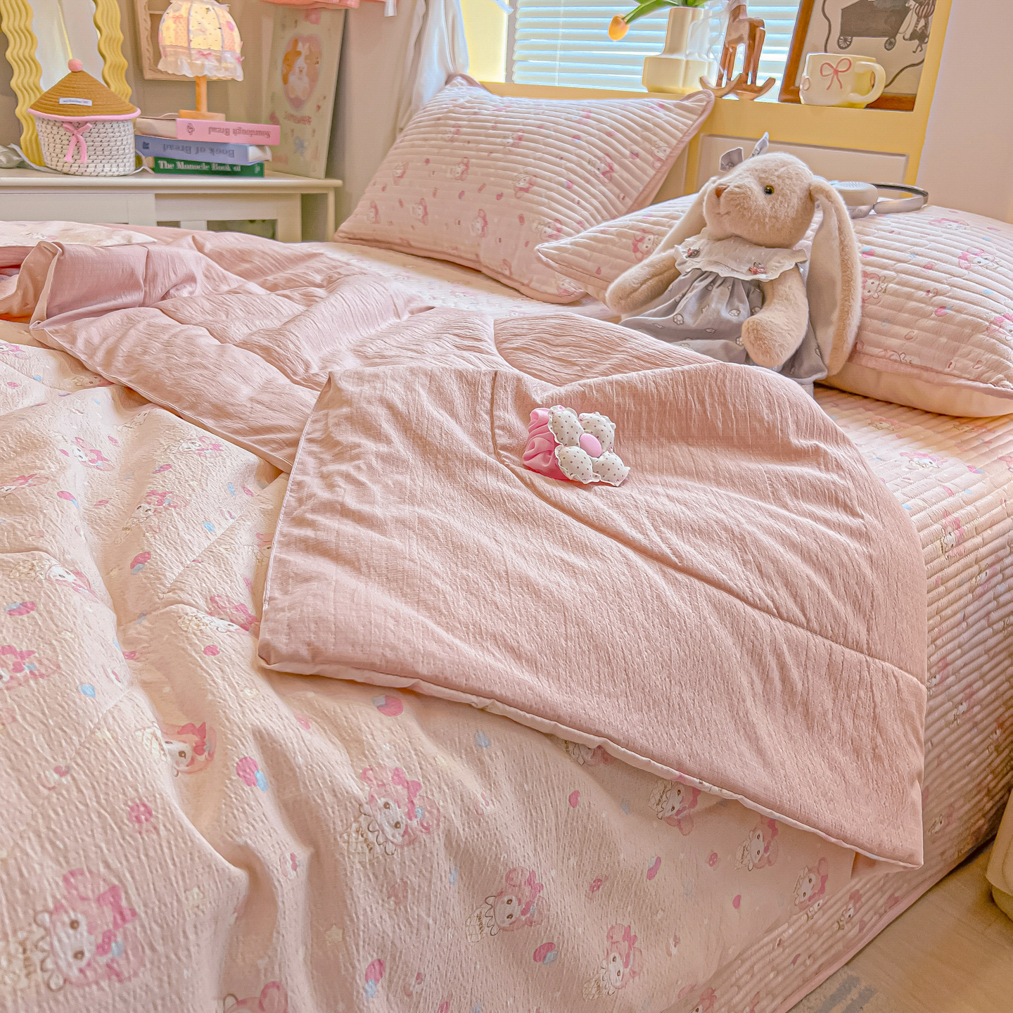 乐逸家纺 2026新款A类云感双层纱夏被床盖四件套 粉粉兔