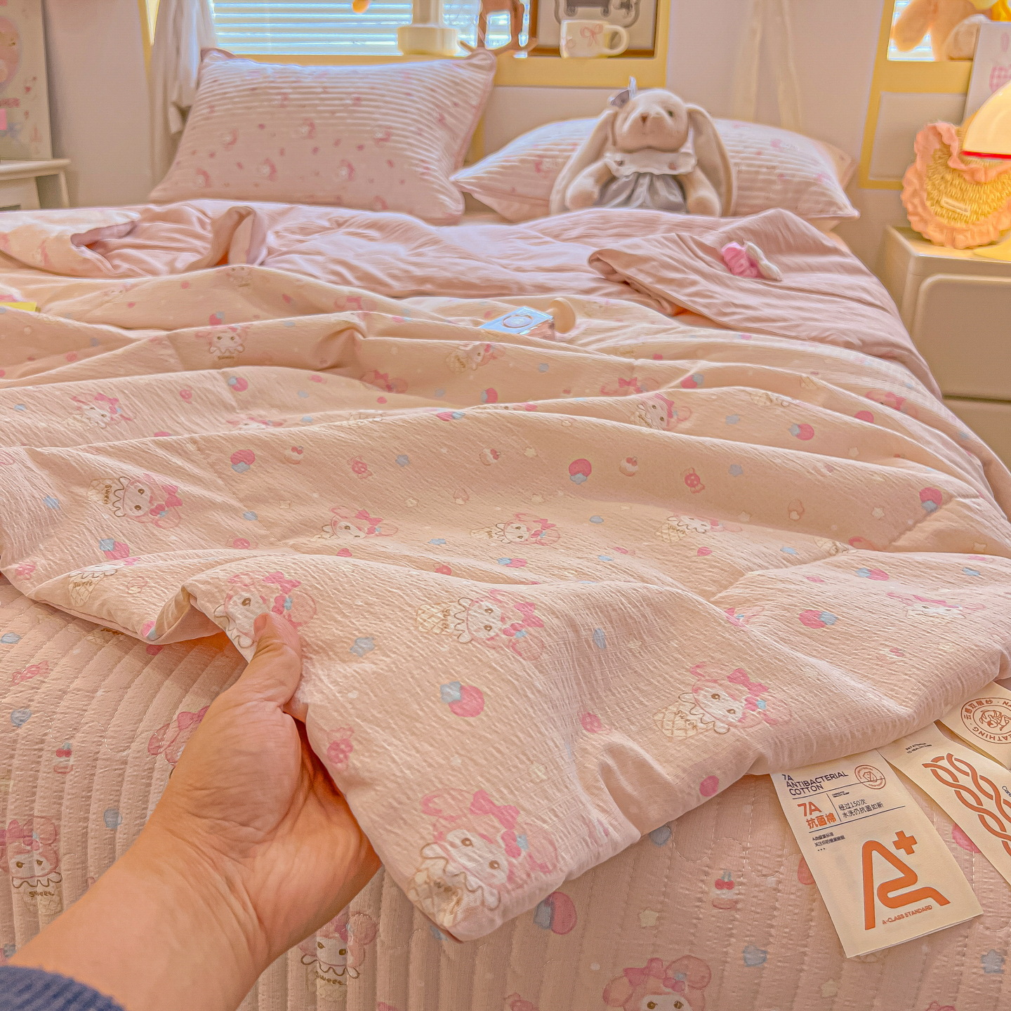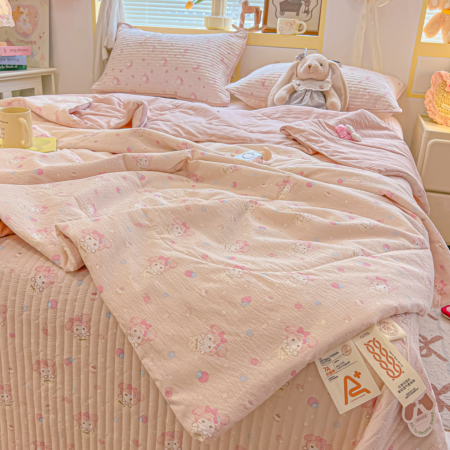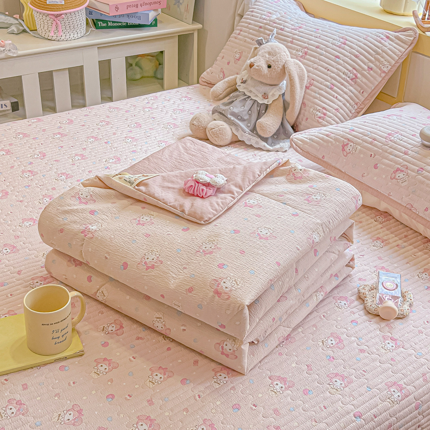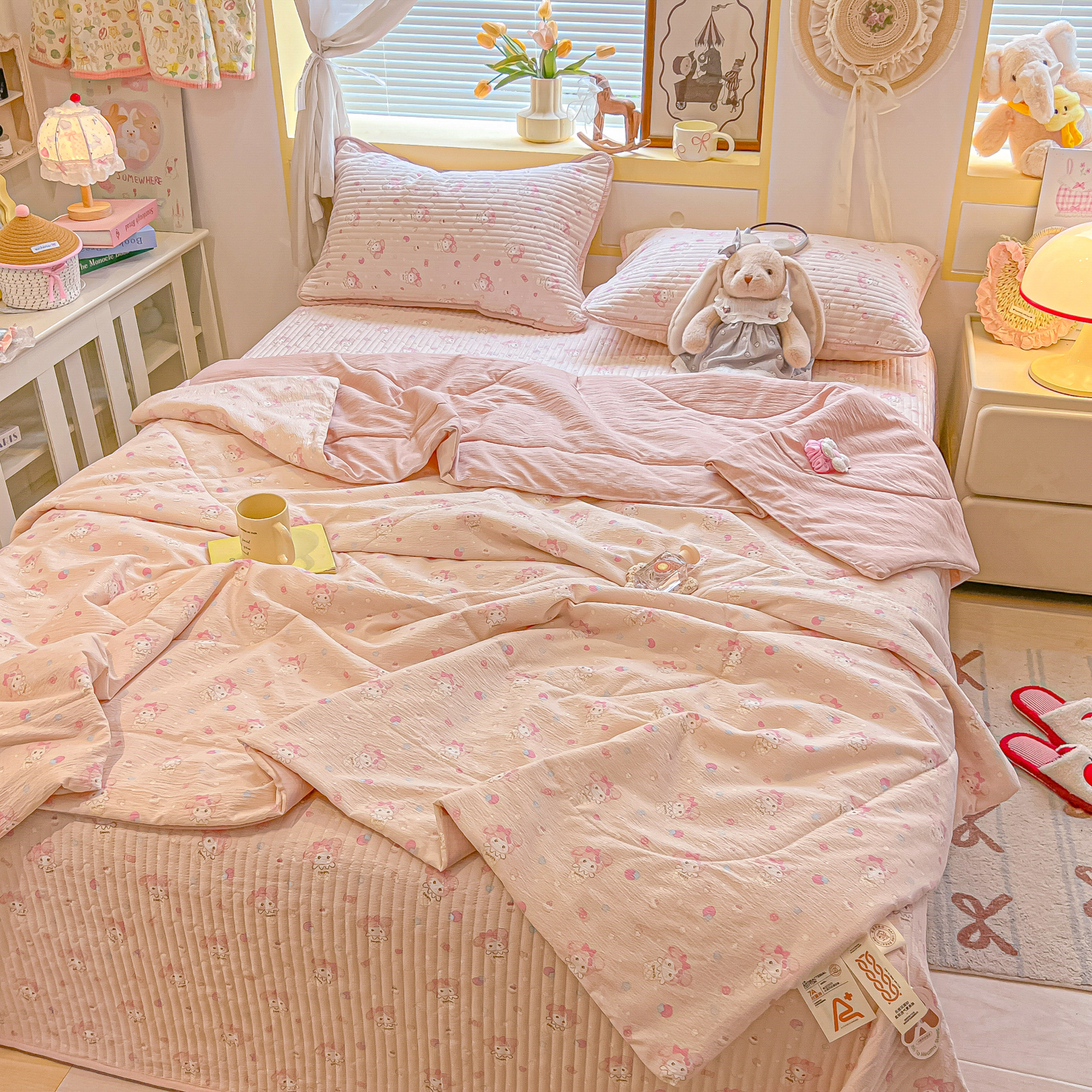 • 91家纺网 家纺一手货源 找家纺 乐逸家纺  2026新款A类云感双层纱夏被床盖四件套 粉粉兔