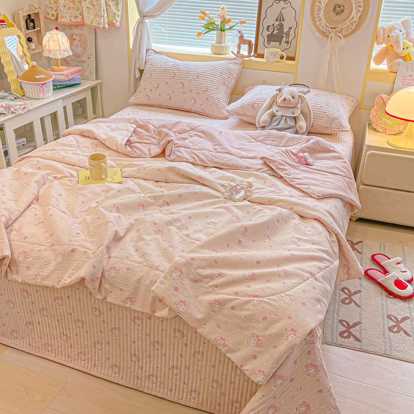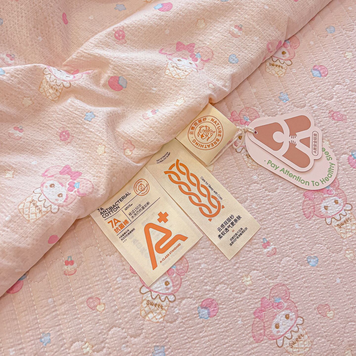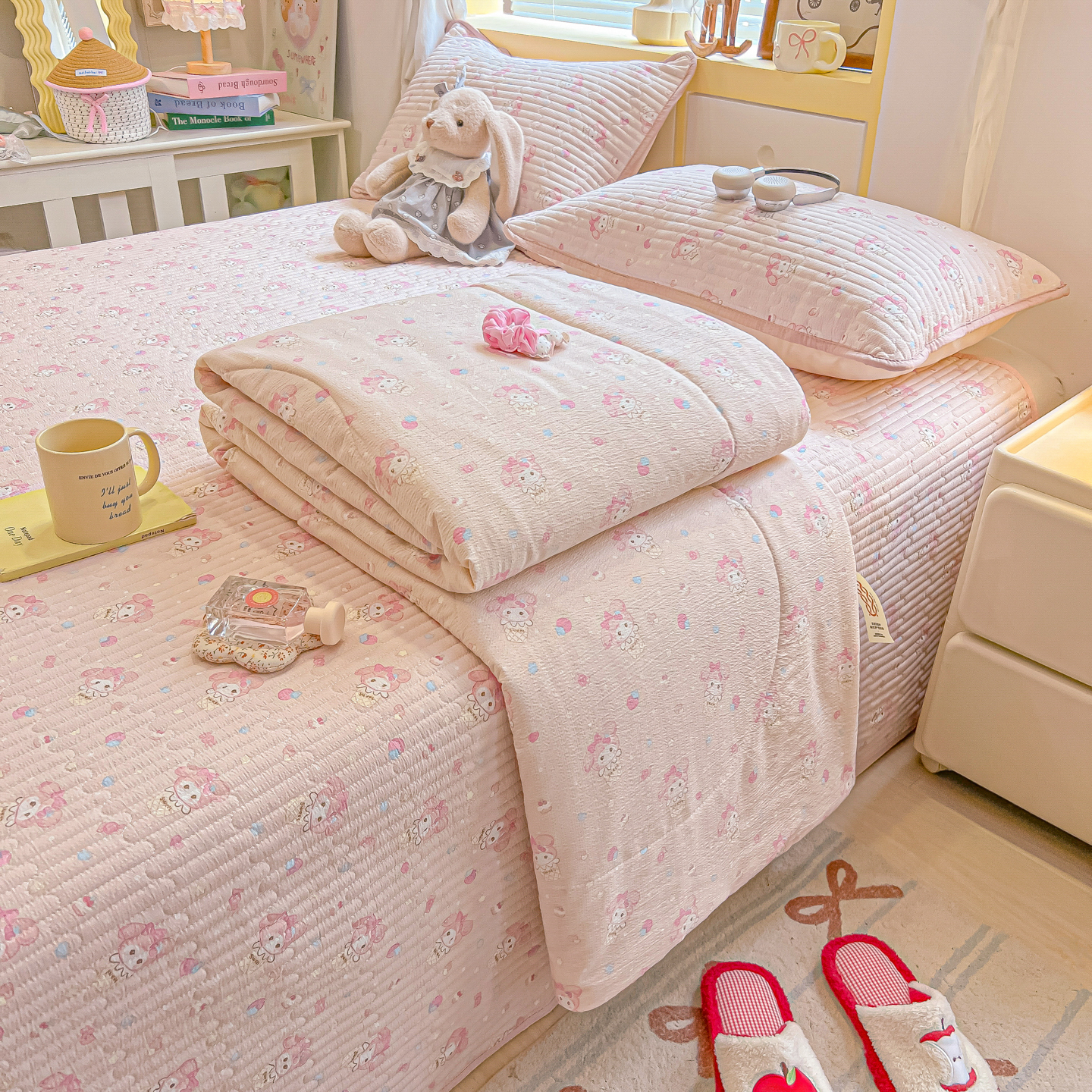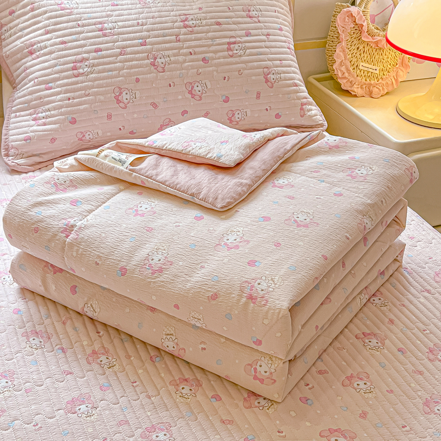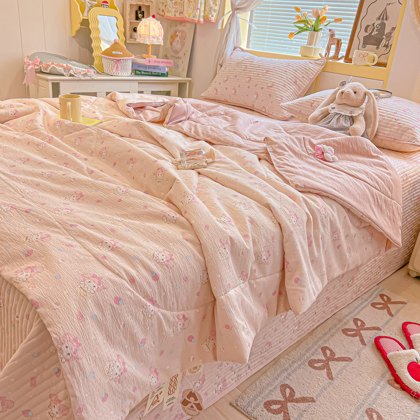 • 91家纺网 家纺一手货源 找家纺 乐逸家纺  2026新款A类云感双层纱夏被床盖四件套 粉粉兔