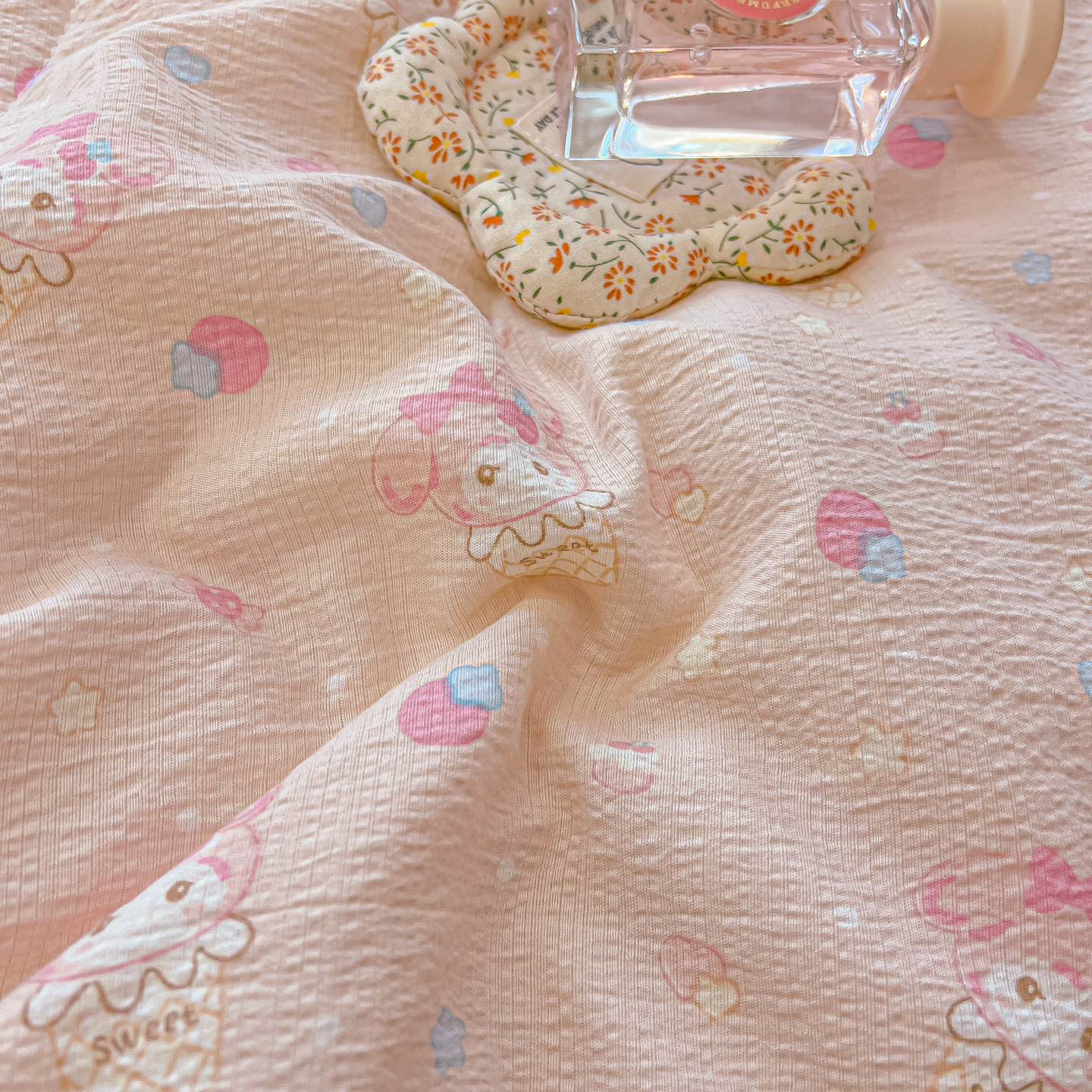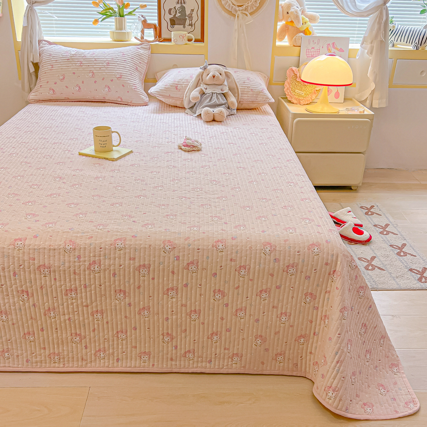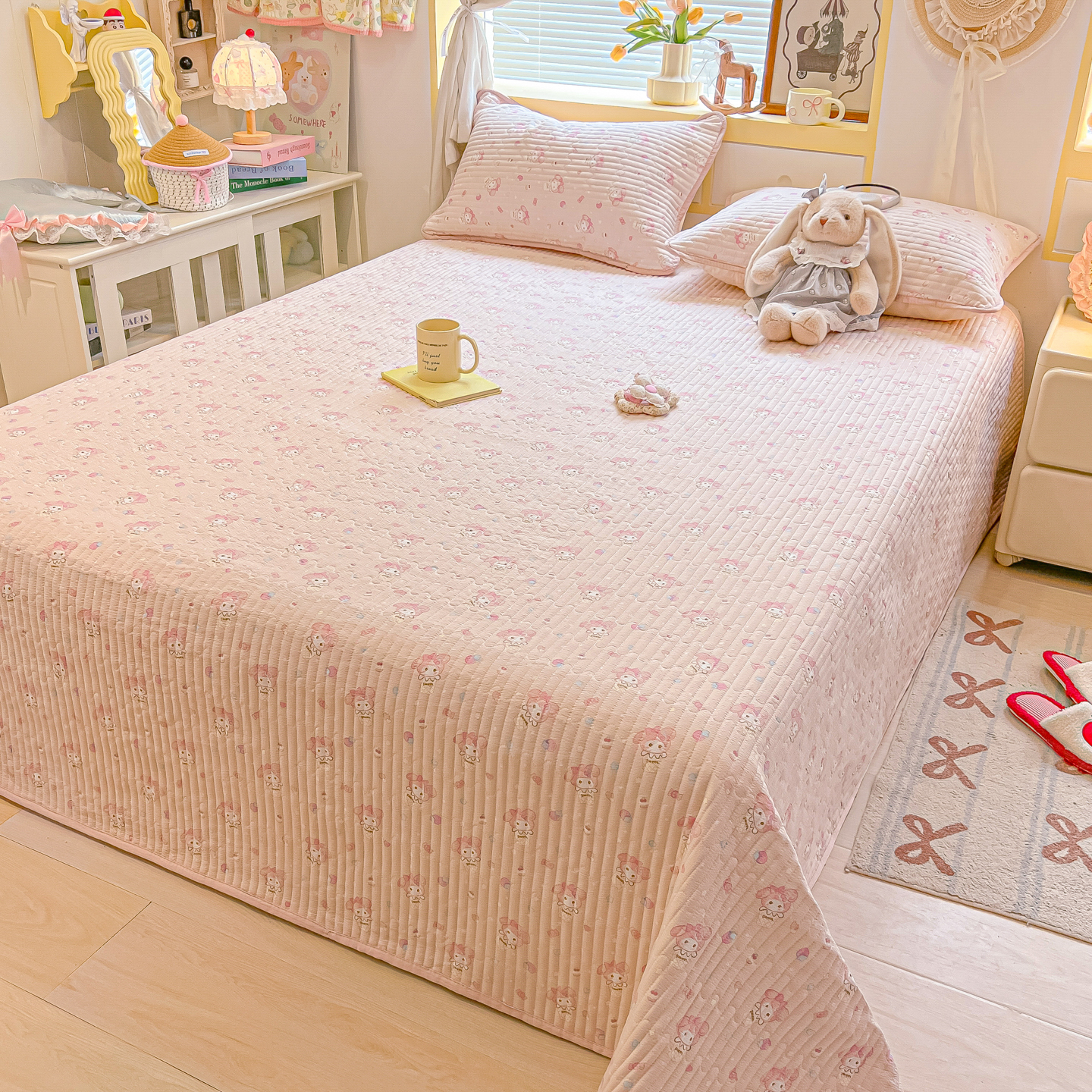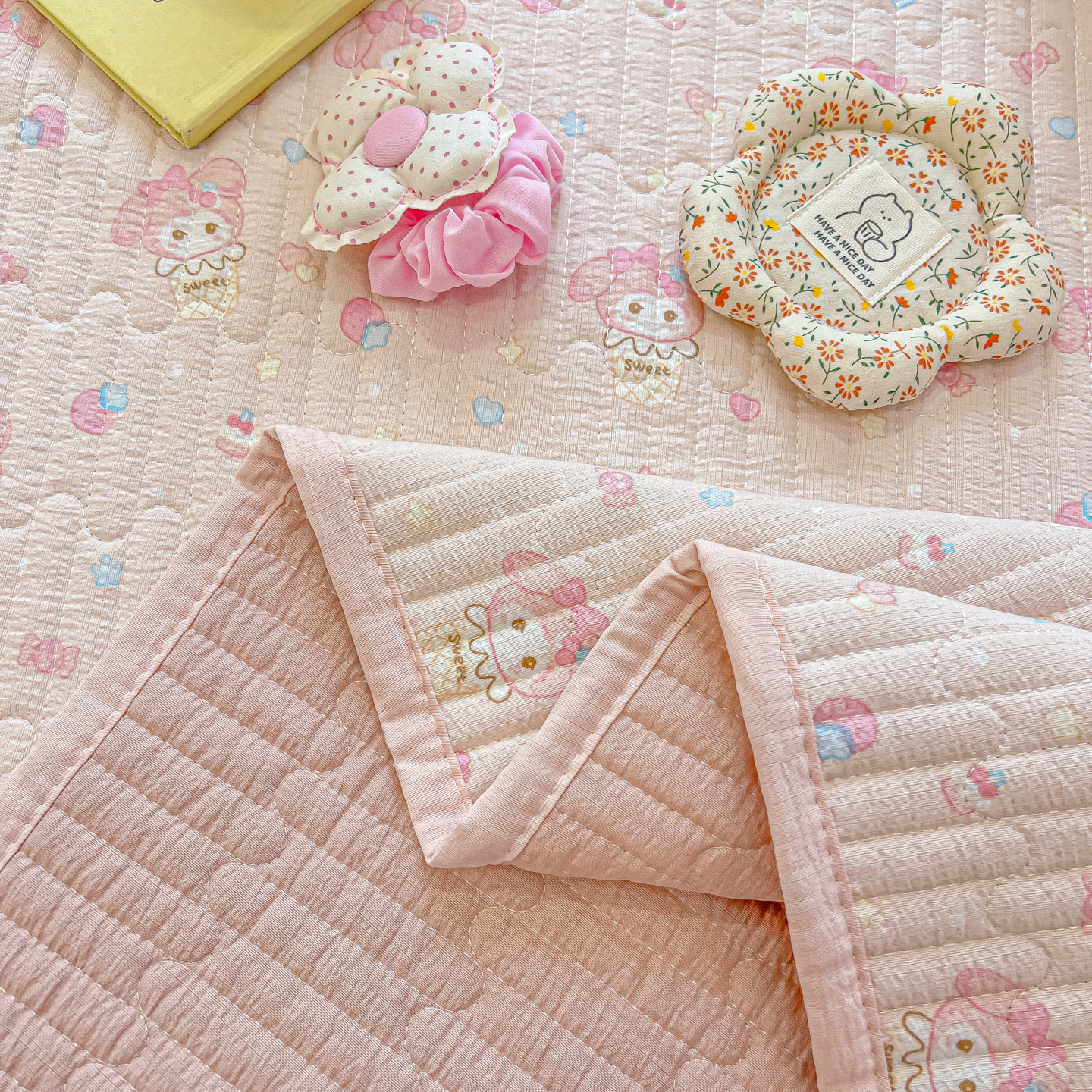 • 91家纺网 家纺一手货源 找家纺 乐逸家纺  2026新款A类云感双层纱夏被床盖四件套 粉粉兔