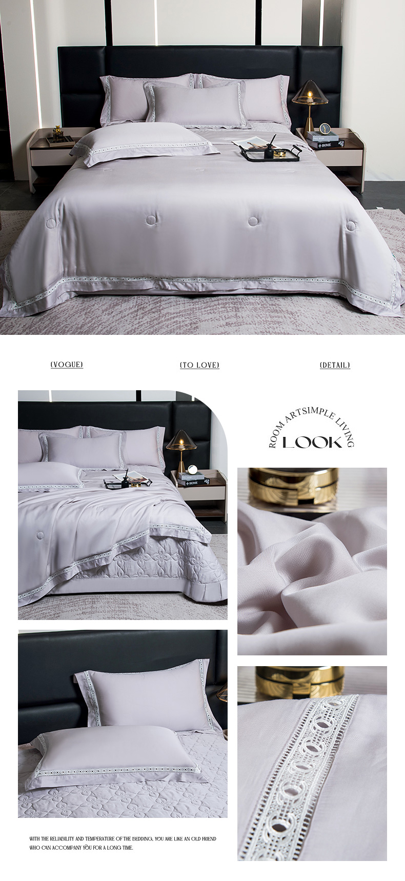 商品名称:三俏家纺 2026新款60支兰精天丝A类镂空床盖款夏被四件套纯色20%大豆蛋白【包质检】 暮光紫