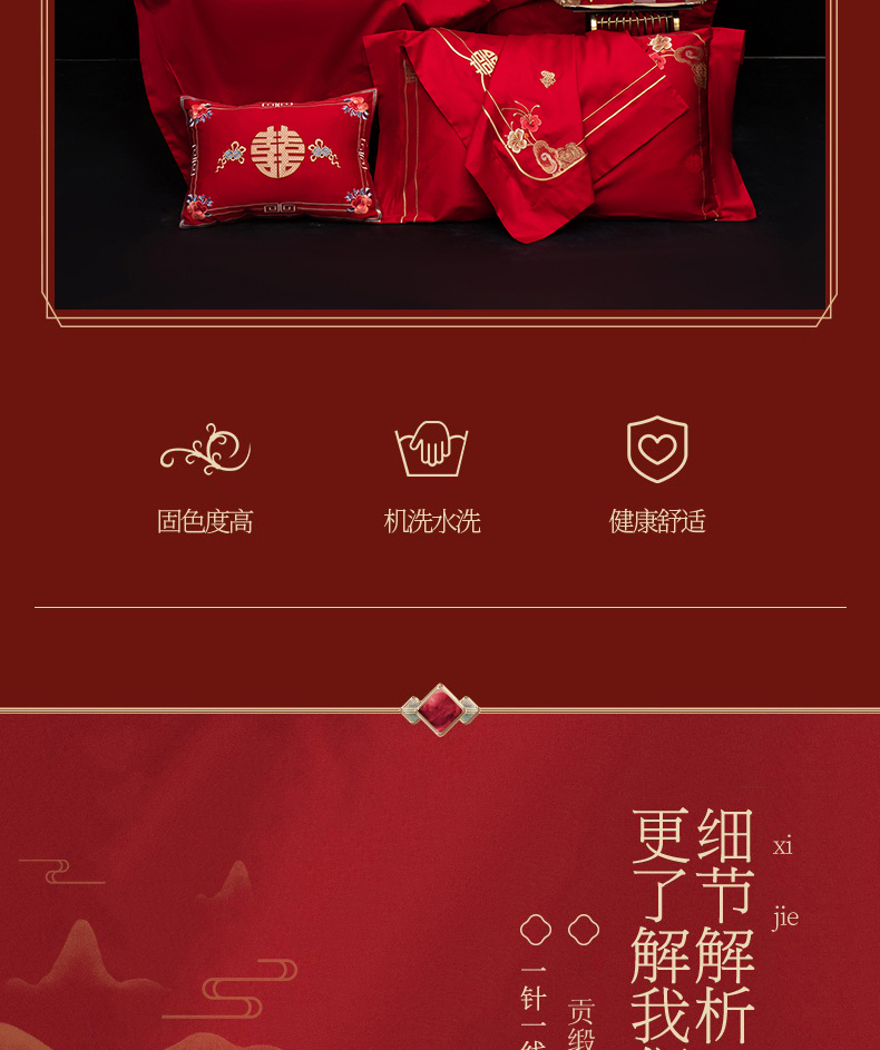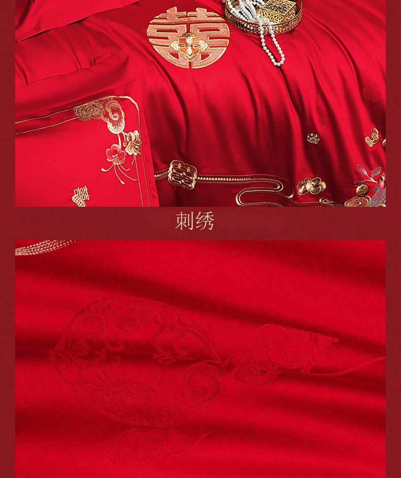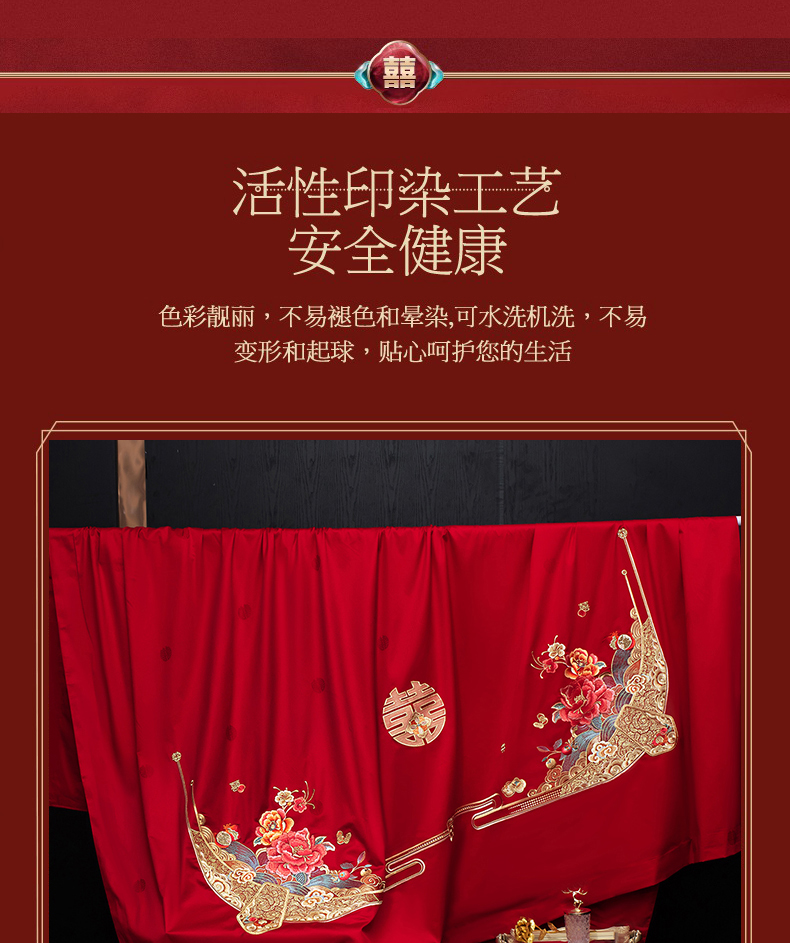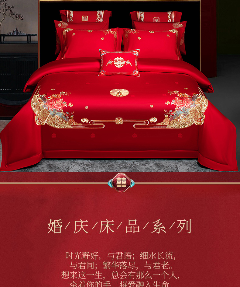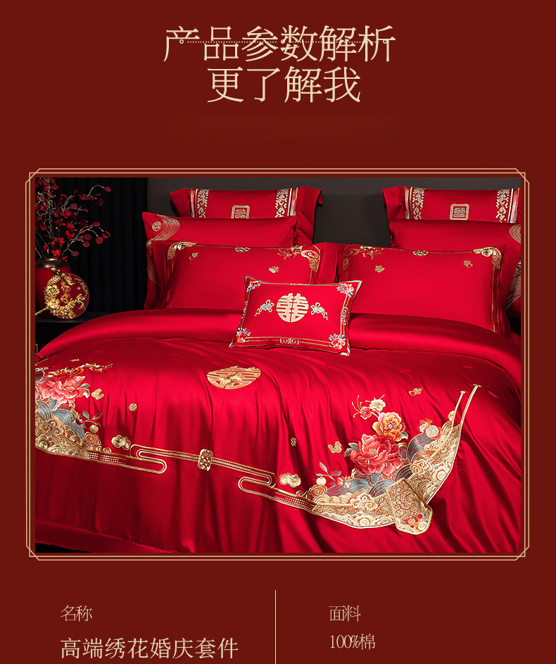 当前位置: 91家纺网 > 商品网购 > 床品套件 > 四件套 > 婚庆四件套 > 蒂爵 2026年重绣性价比款长绒棉提花全棉纯棉绣花婚庆四件套多件套大红色刺绣结床上用品 花开纳福