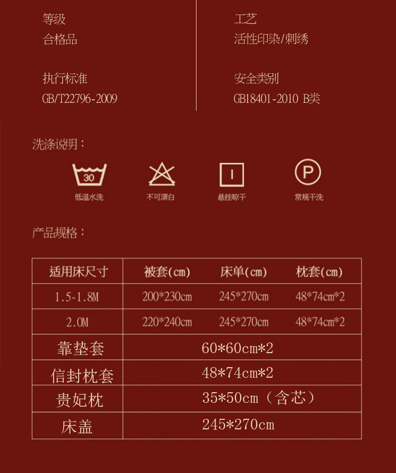 1.8m(6英尺)床单九件套 | ¥450.00 |