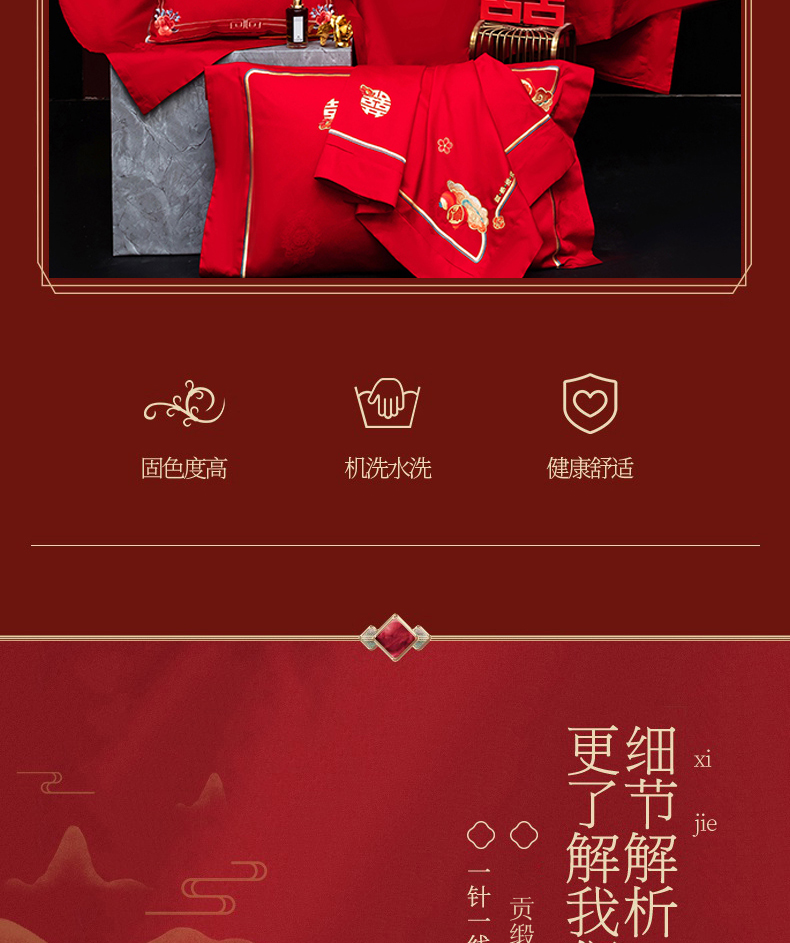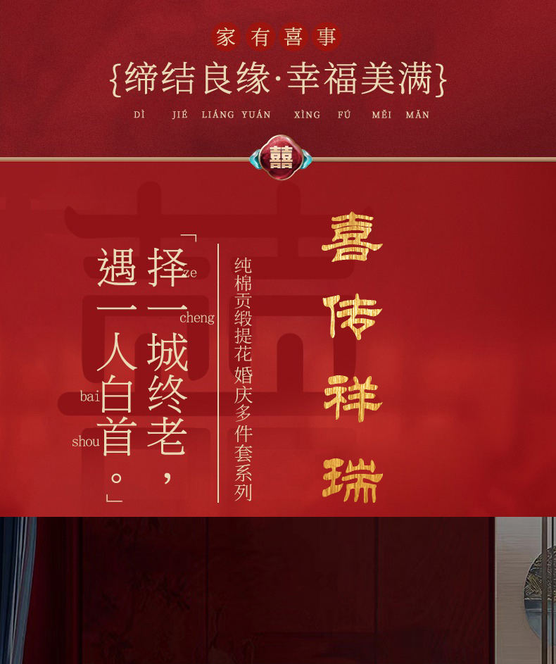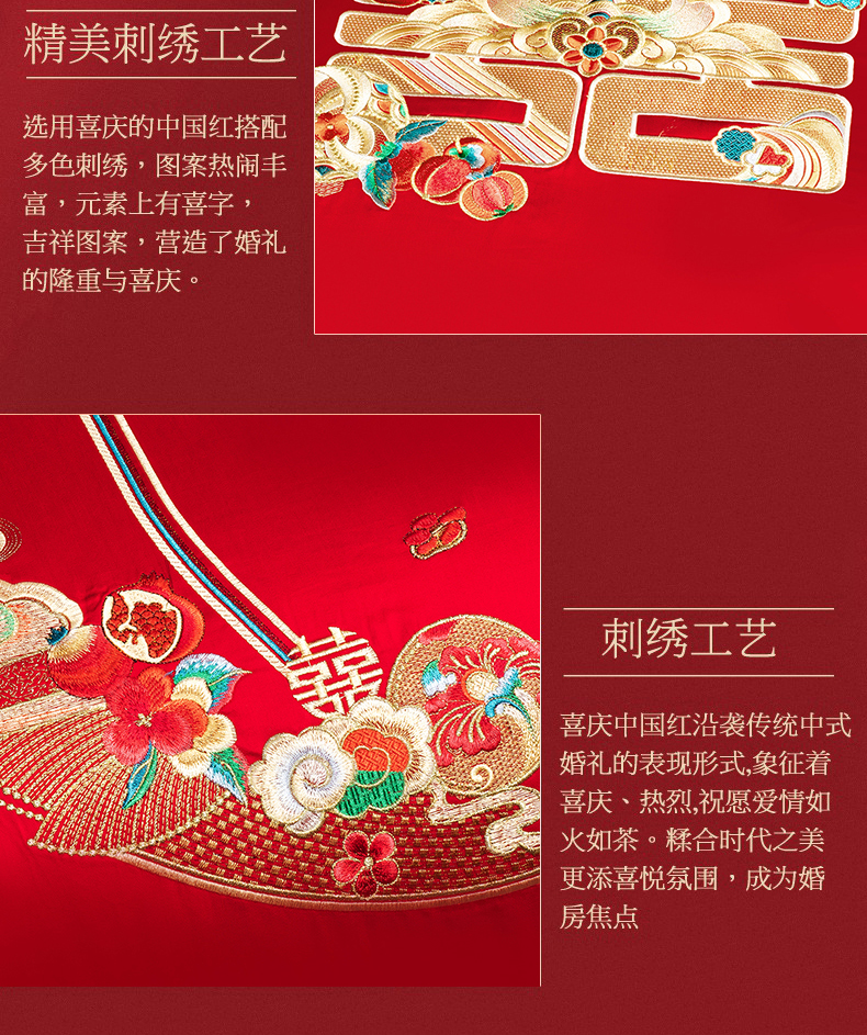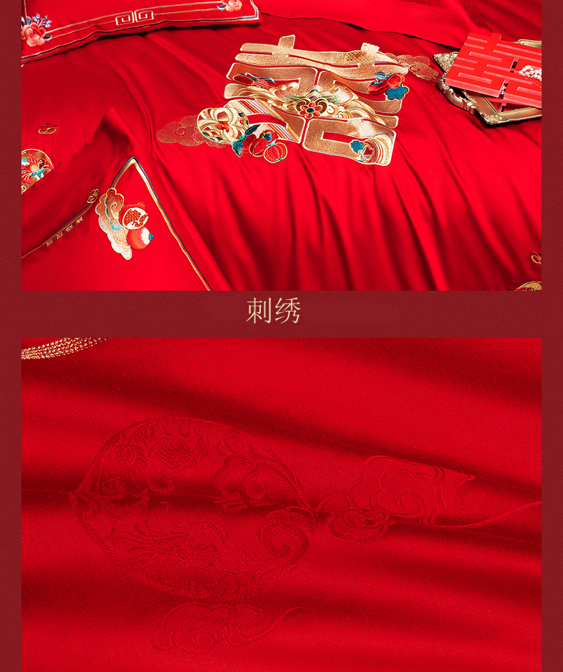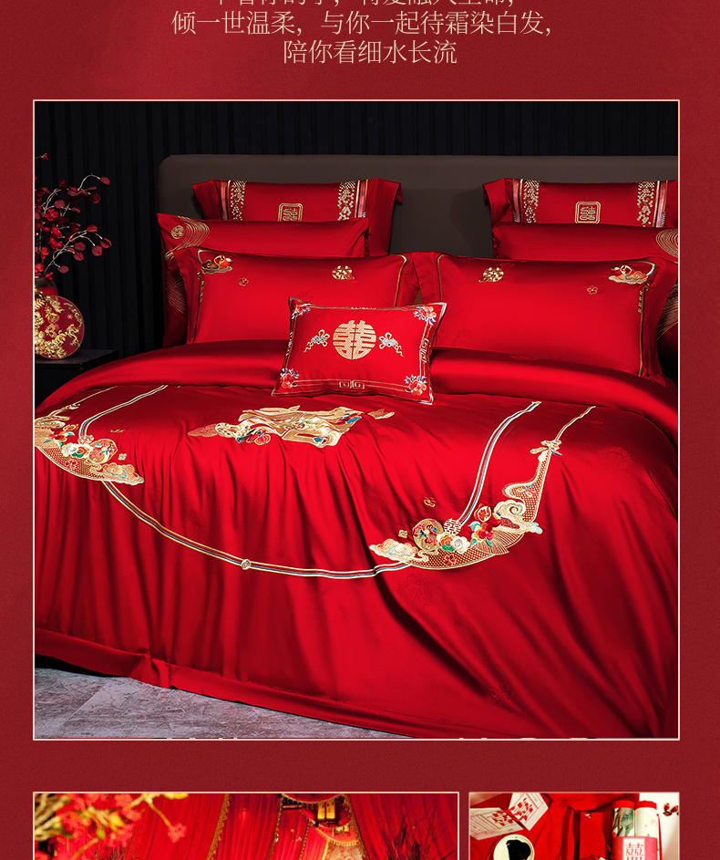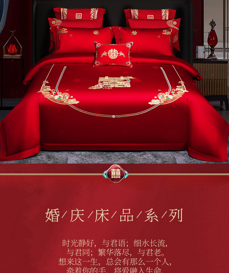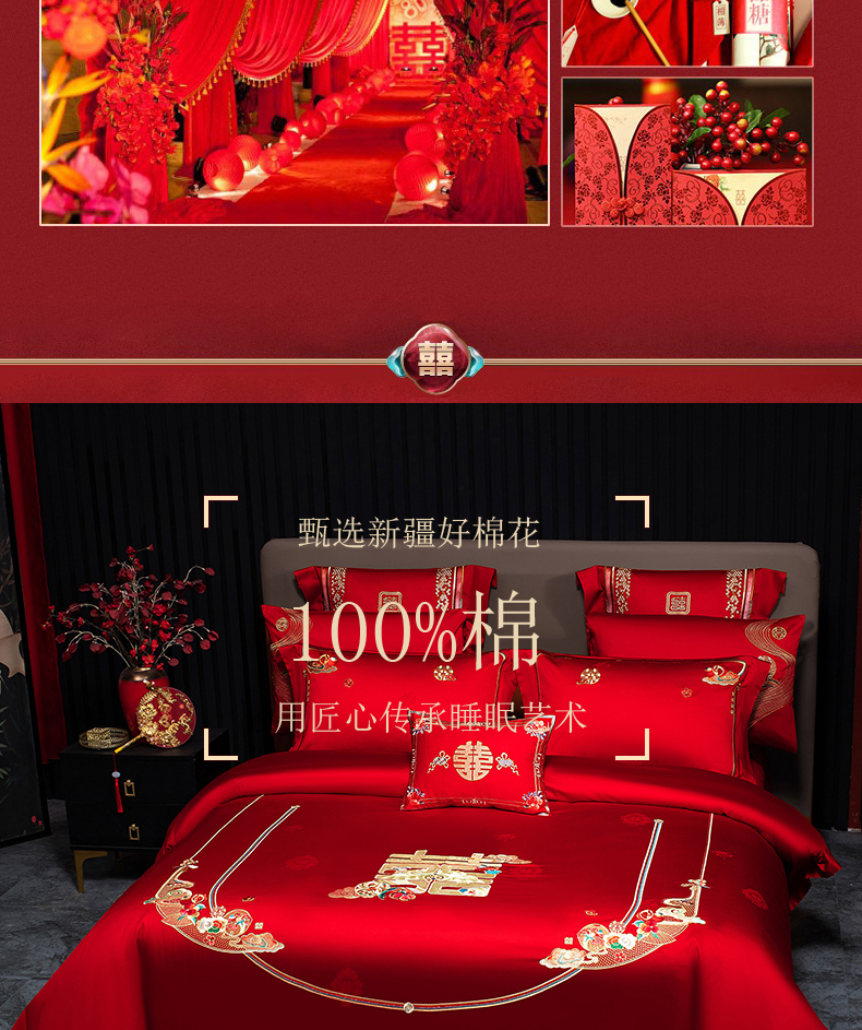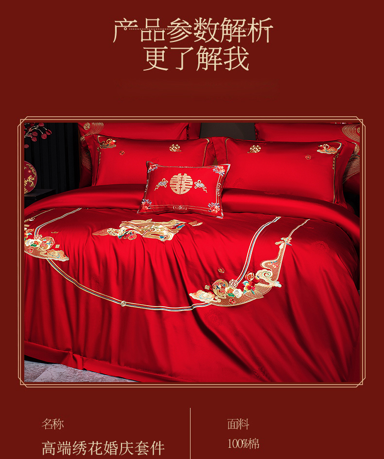 当前位置: 91家纺网 > 商品网购 > 床品套件 > 四件套 > 婚庆四件套 > 蒂爵 2026年重绣性价比款长绒棉提花全棉纯棉绣花婚庆四件套多件套大红色刺绣结床上用品 喜传祥瑞