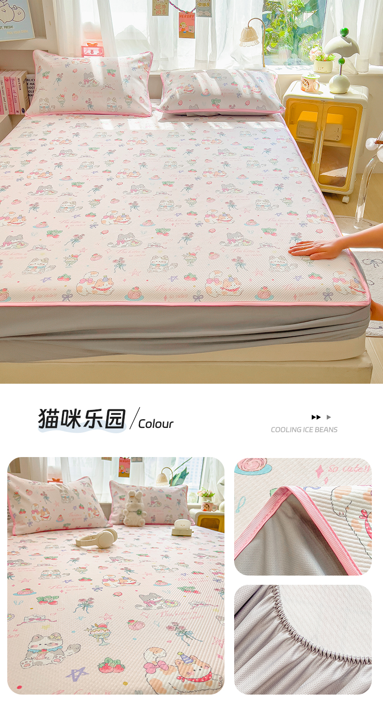 (总)莱米家纺 2026新款斜纹凉感床席冰豆豆系列,豹纹小猫,彩色木马,从草集,花朵小猫,花仙子,兰花小兔,蓝格小狗,浪漫花语,猫猫宴会,猫咪乐园,萌宠甜兔,泡芙小狗,条纹小熊,小南瓜,叶子小熊