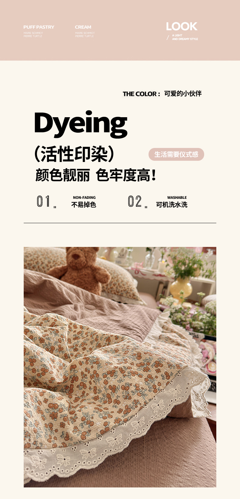 (总)初念 2025新款亲肤舒适双层纱云感纱小花边四件套-拾光,拾光-芭比兔,拾光-复古浪漫,拾光-花丛萌兔,拾光-花丛女孩,拾光-少女象,拾光-狮子唱片,拾光-思念女孩,拾光-星眠云野