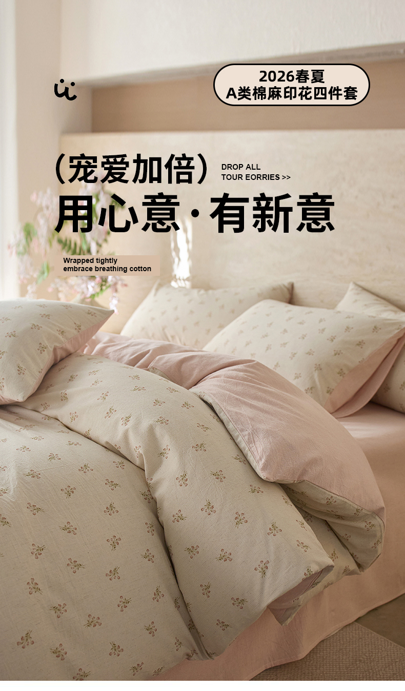 当前位置: 91家纺网 > 商品网购 > 床品套件 > 四件套 > 棉麻四件套 > 亿梵家居 2026春夏新款A类棉麻印花四件套 花序