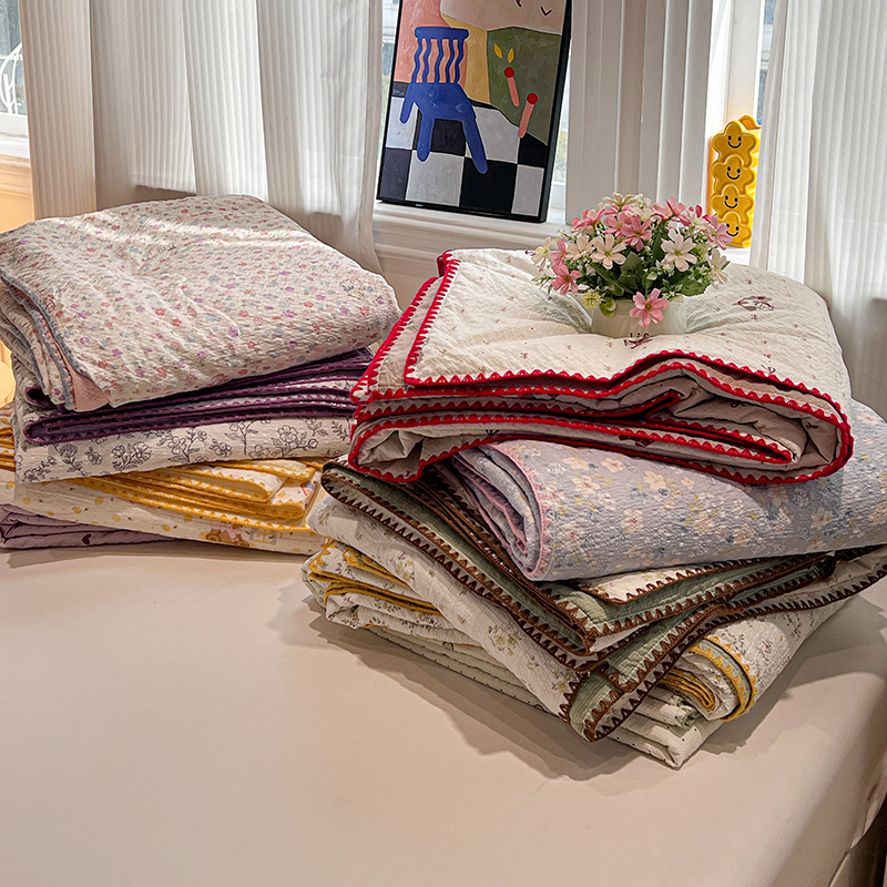一比一家纺 2026春夏新款三角针泡芙纱夏被夏凉被空调被四件套 三角针夏被-浪漫满屋