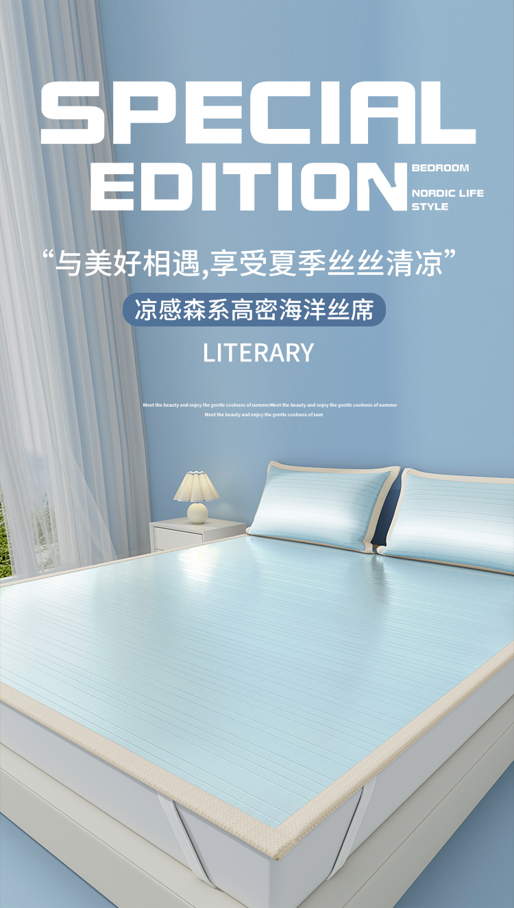 商品名称:(总)曼陀罗 2026新款凉感海洋丝冰咖条纹凉席-平铺款