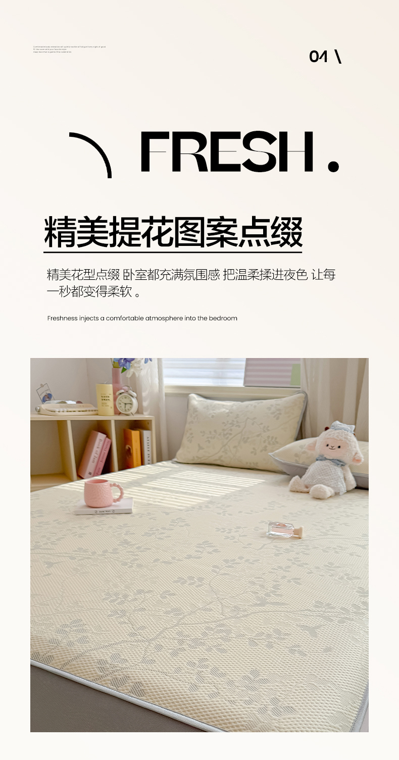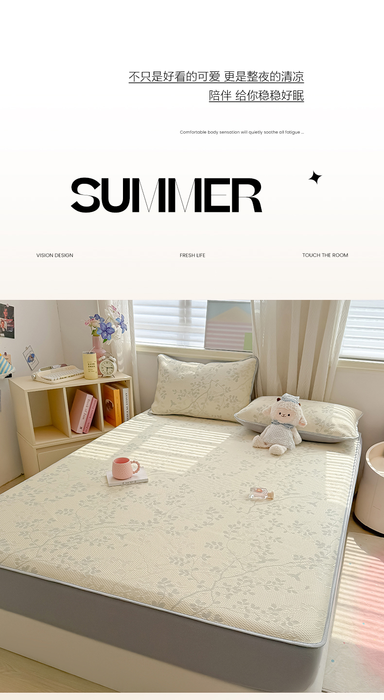 • 91家纺网 家纺一手货源 找家纺 多乐家纺 206新款冰豆豆防水凉感软席凉席席子 花枝金叶-床席款