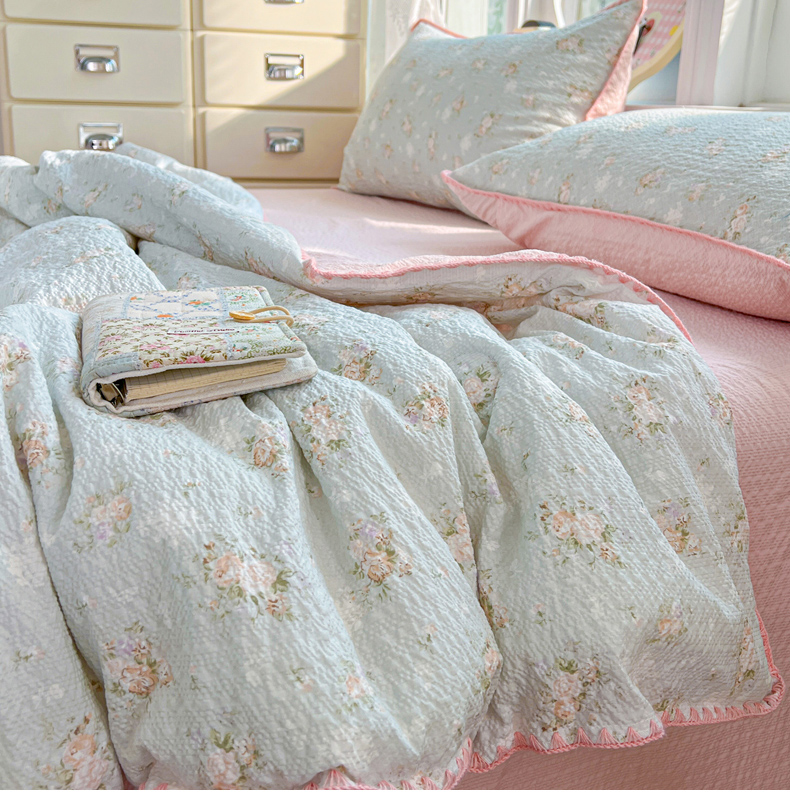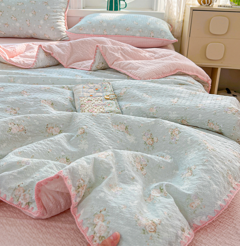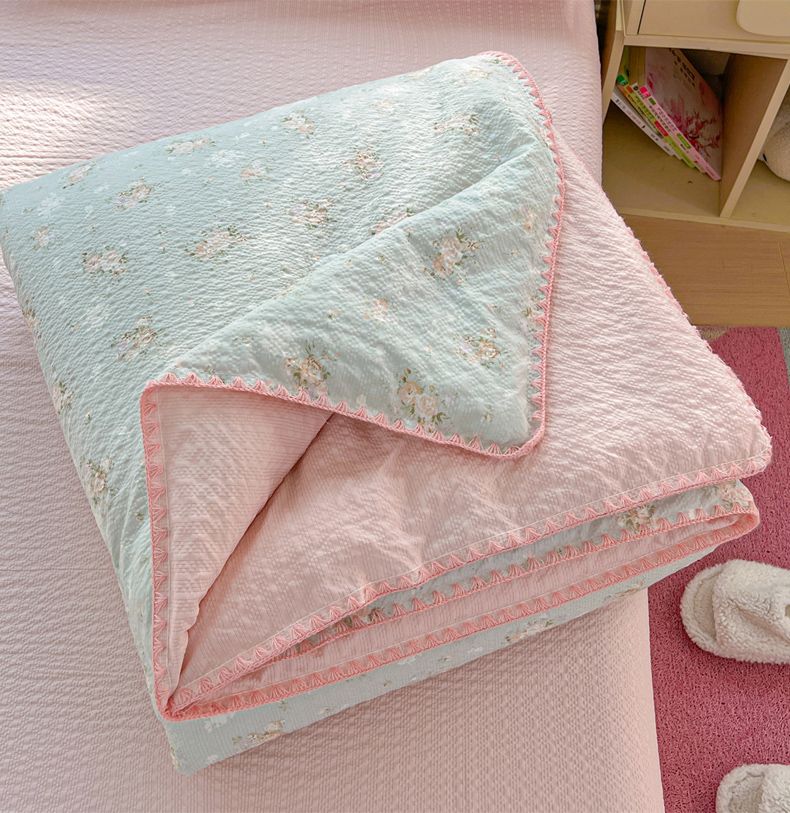 恒尚居 2026新款A类泡芙纱贝壳边夏被夏凉被四件套空调被三角针绣边 【清新粉玫瑰】贝壳边