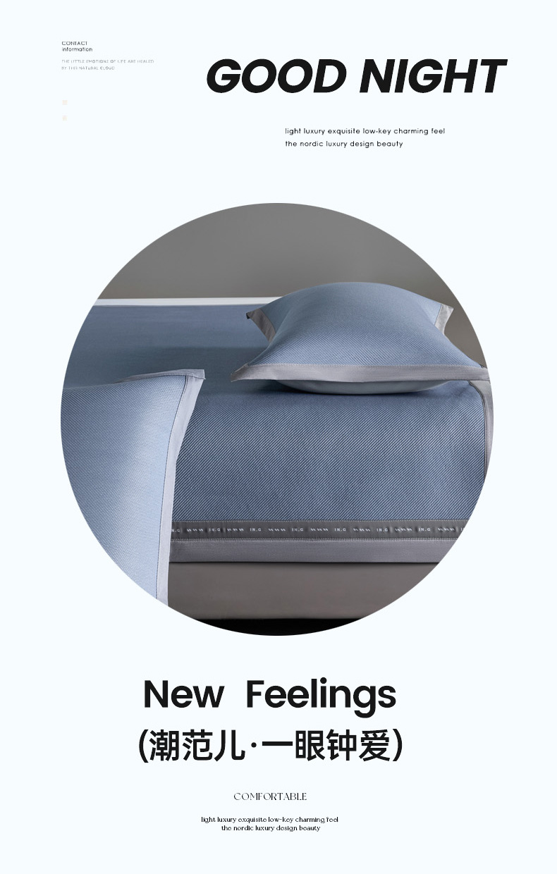 (总)印季家纺 2025新款轻奢简约凉感丝泡泡席-格调凉席,藏蓝,米黄,墨绿,浅粉,银灰