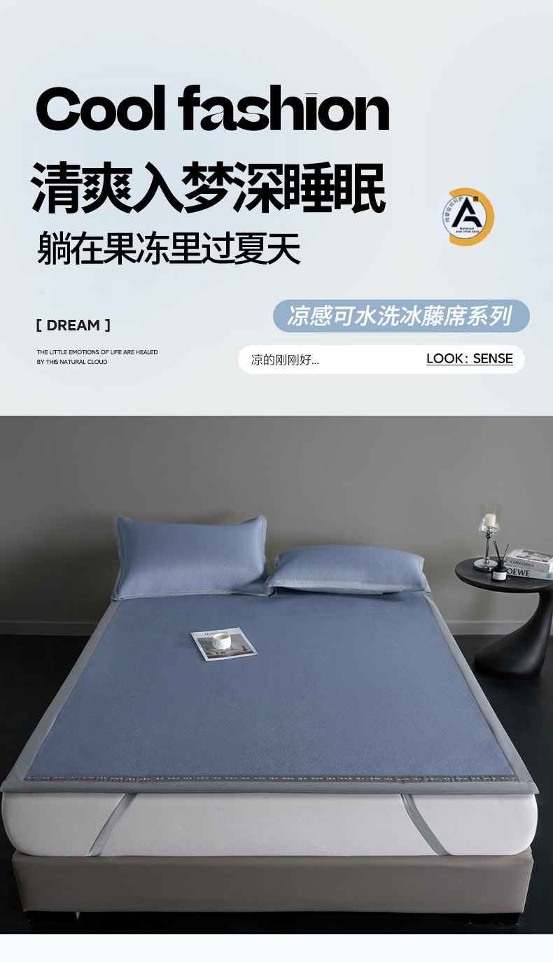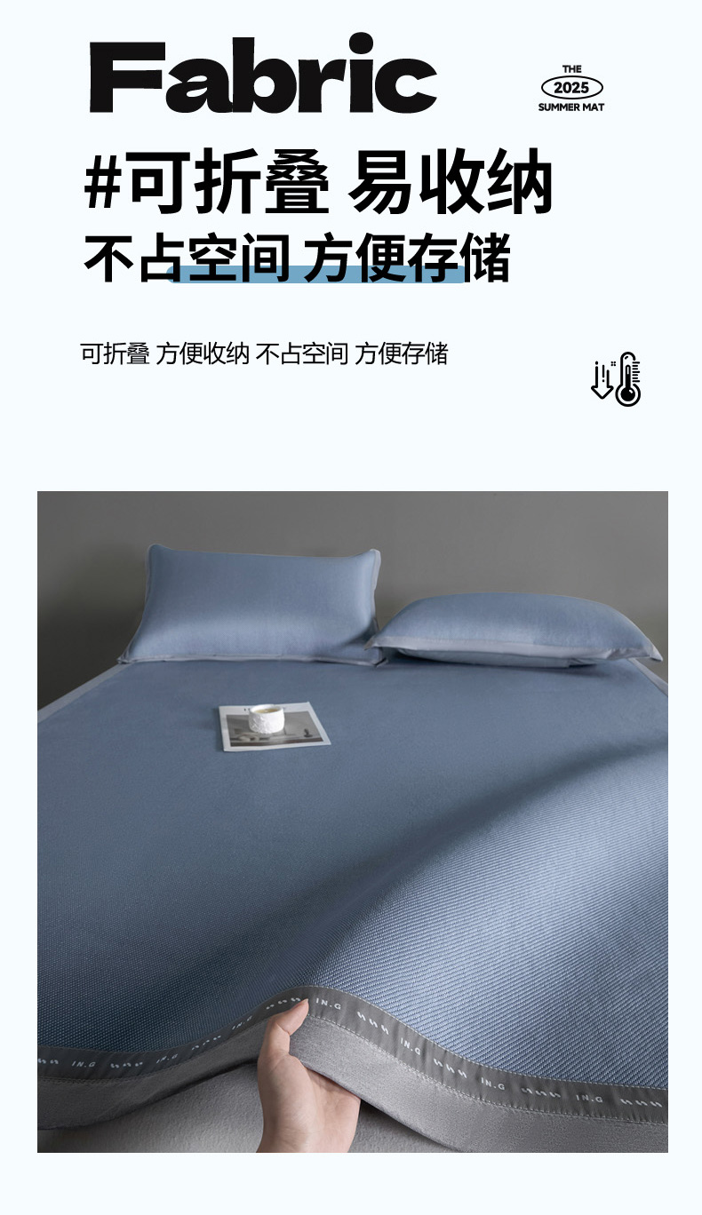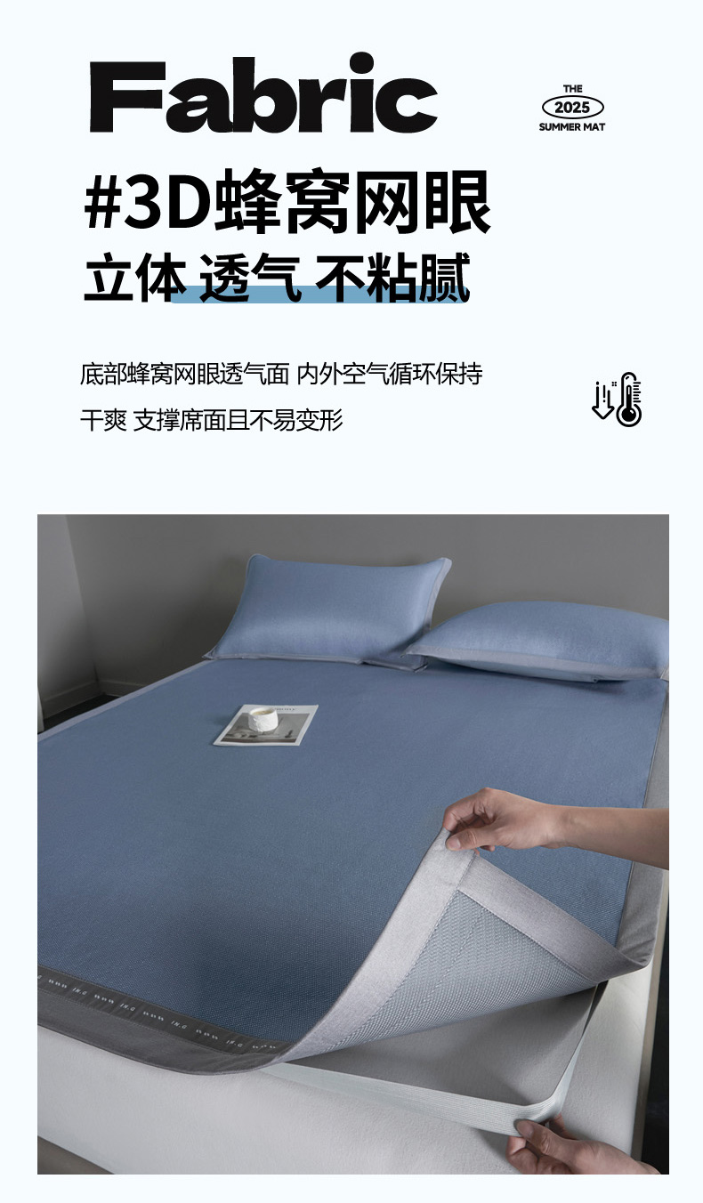 印季家纺 2026新款可水洗织带款凉感冰藤软席 深蓝