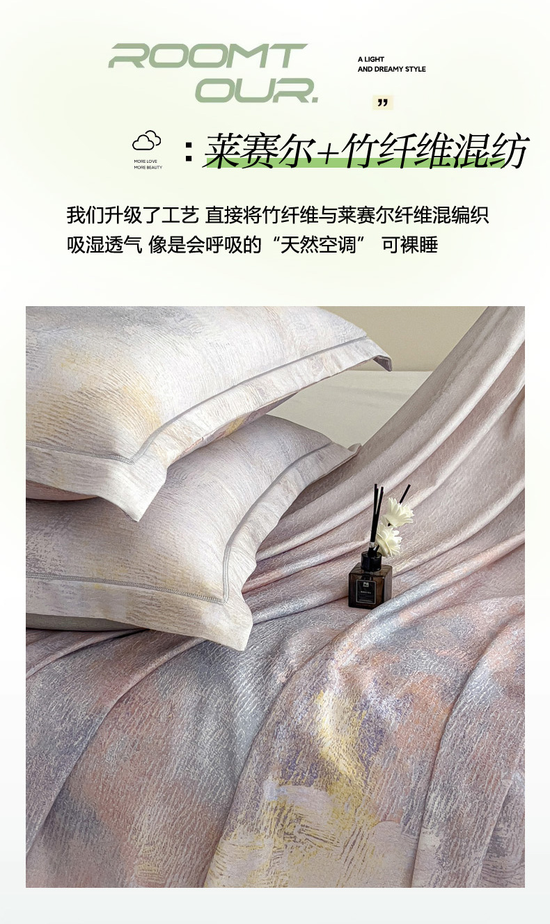 印季家纺 2026新款数码印花竹纤维+莱赛尔床单凉席 五彩缤纷
