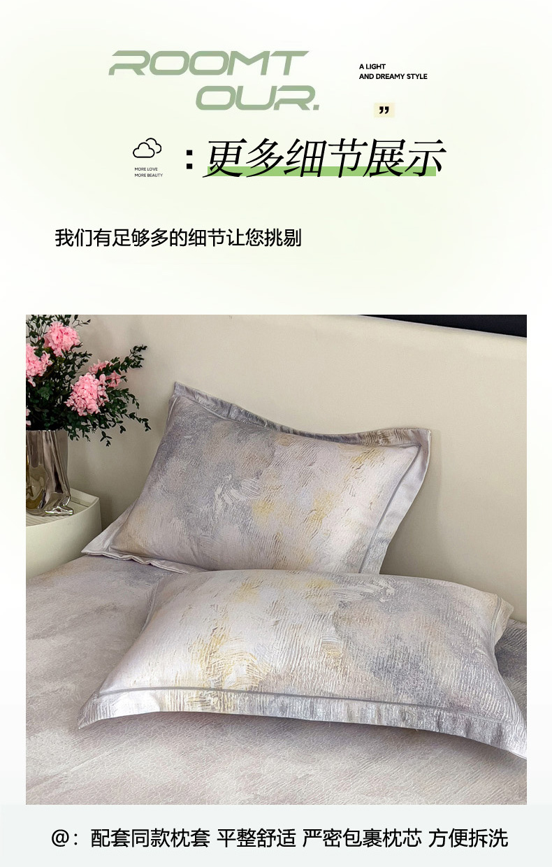 (总)印季家纺 2026新款5A级抗菌加厚绣花冰丝席-流星雨(床笠款),豆沙,灰咖,天蓝,蓝灰,水绿,银灰