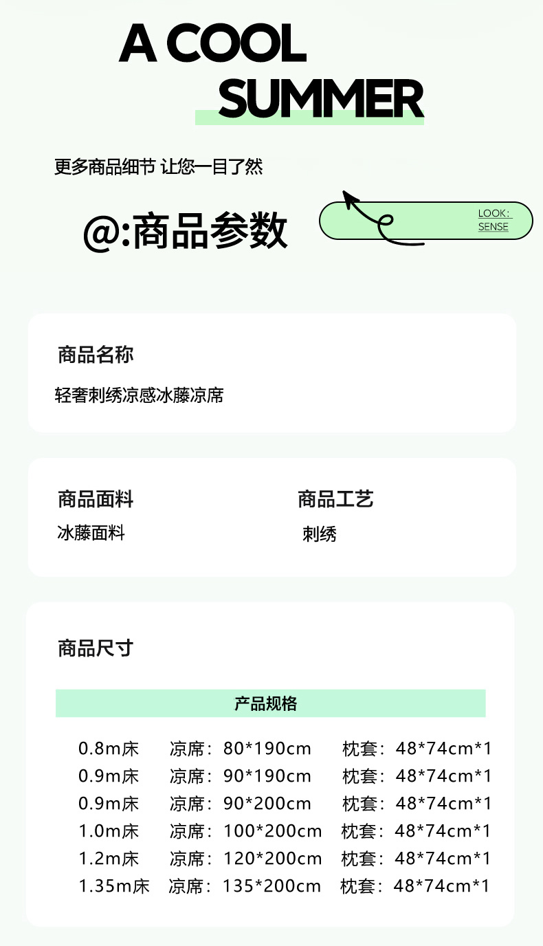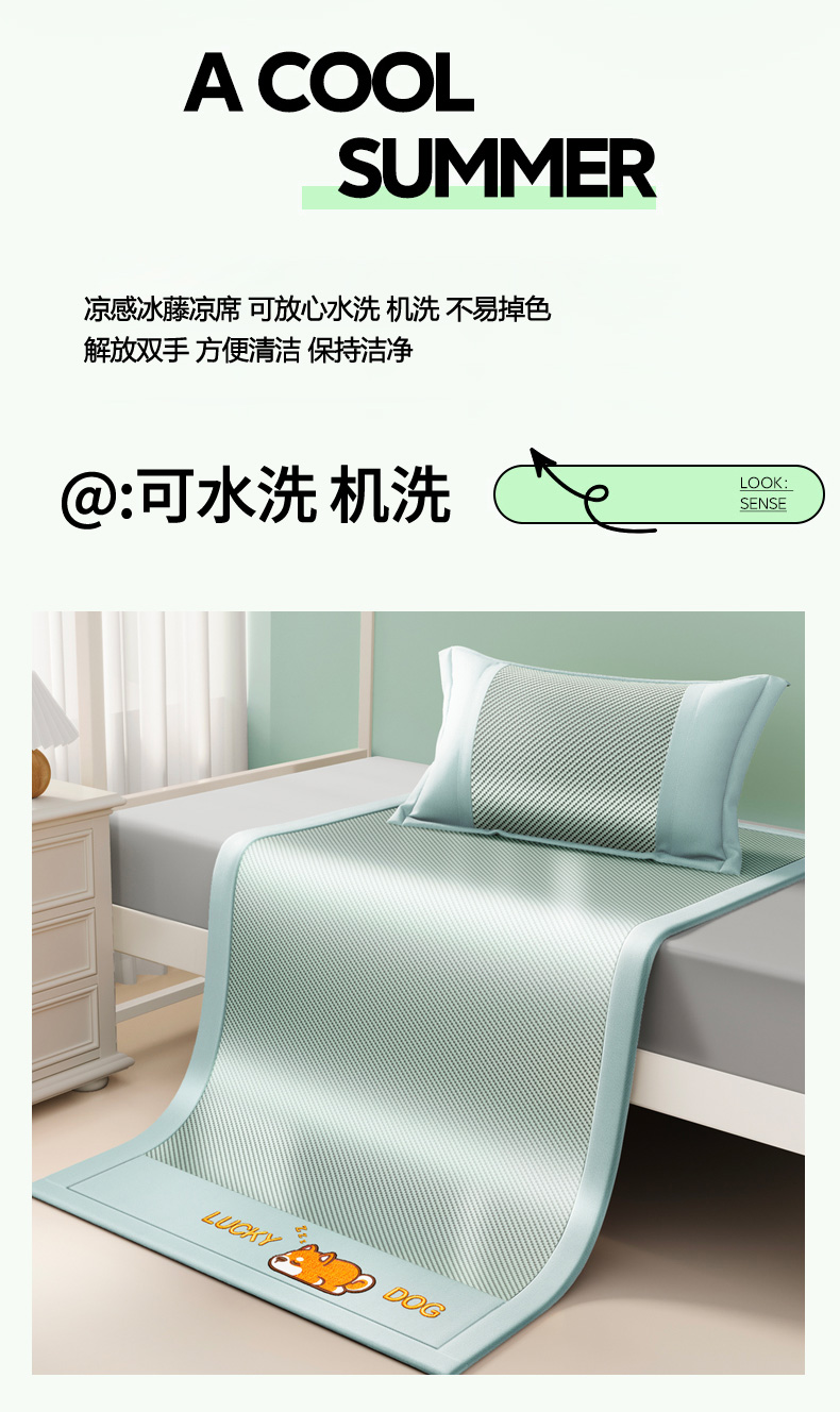 商品名称:(总)印季家纺 2026新款可机洗刺绣冰藤凉席席子童席