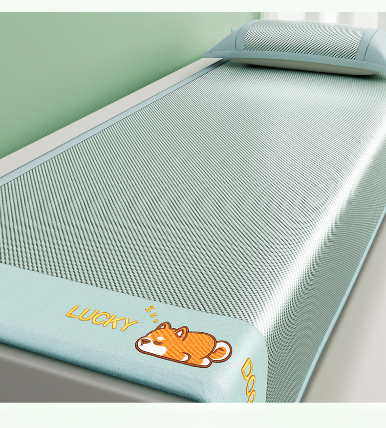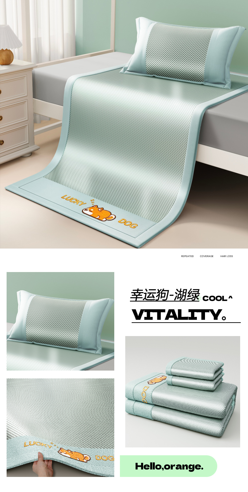 (总)印季 2025新款5A级抗菌加厚绣花冰藤席-幸运狗,湖绿,金咖,银灰,雾霾蓝,银咖,银棕