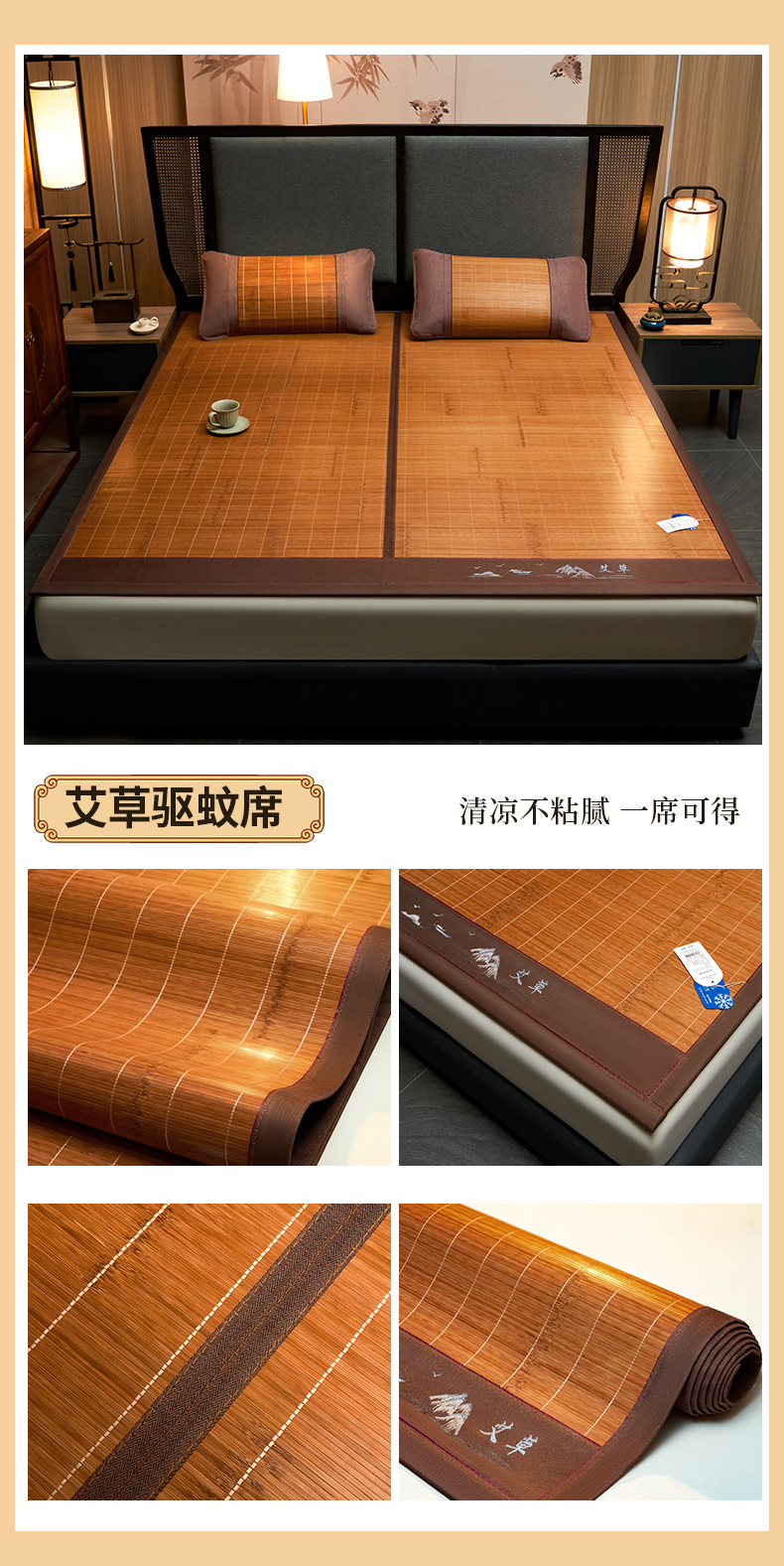 当前位置: 91家纺网 > 商品网购 > 床上用品 > 凉席 > 竹席 > 森璐家纺 2026新款竹韵清凉竹席凉席席子 百福-灰