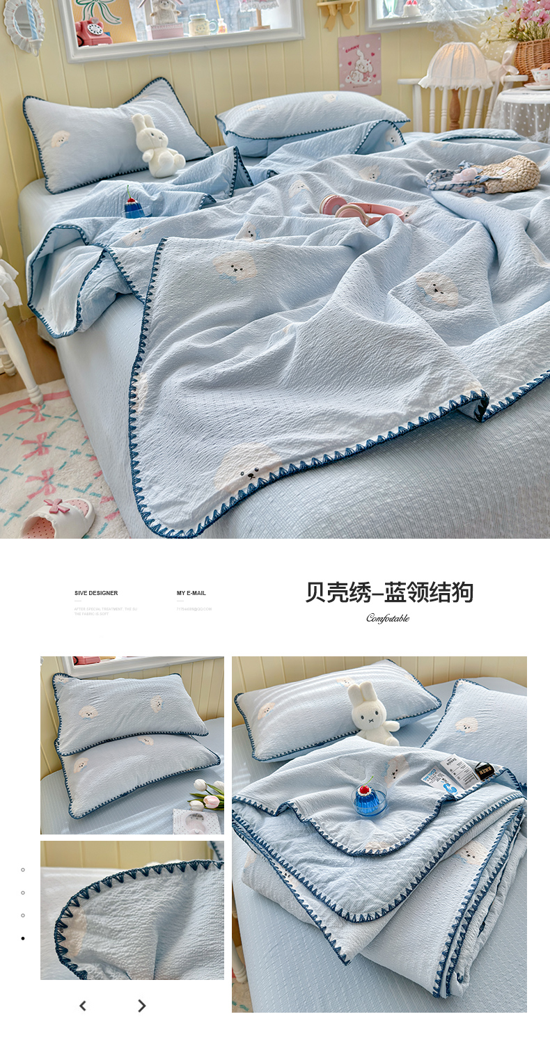 商品名称:初念 2026新款泡芙纱贝壳绣三角针夏被 提供买家秀 欧包-蓝领结狗