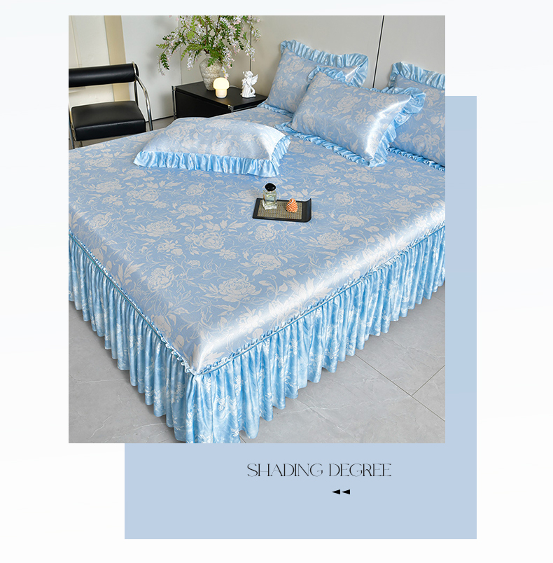 商品名称:(总)畅畅家纺 2026春夏新款豆豆冰丝印花复合床裙款席子凉席三件套