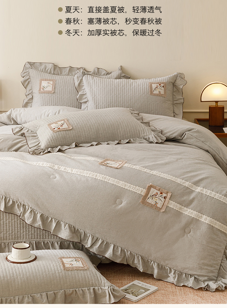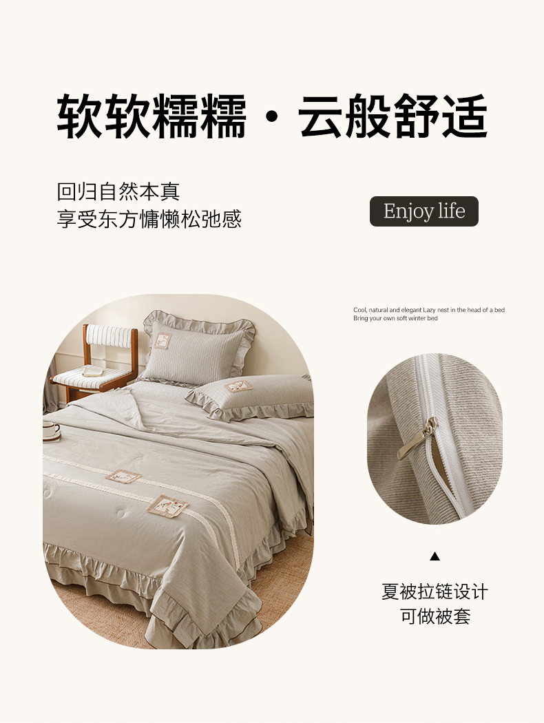 (总)瑞米家居 2026新款棉麻床盖夏被四件-森羽