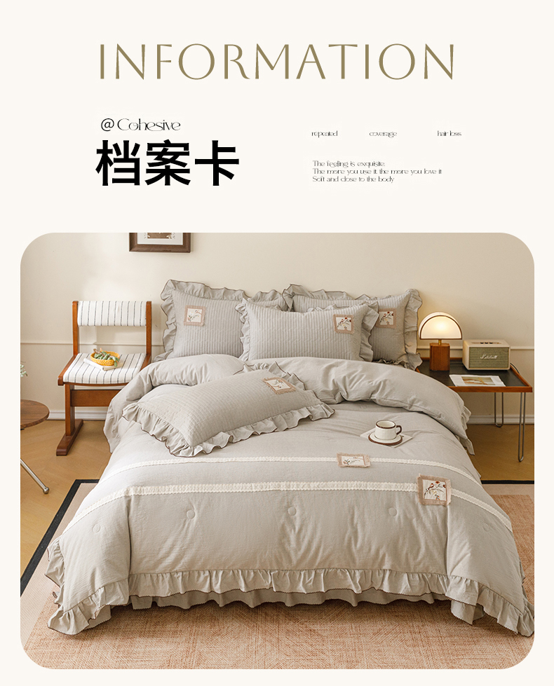 (总)瑞米家居 2025新款A类棉麻提花花边款四件套-蝶恋花,蝶恋花-粉色,蝶恋花-红咖,蝶恋花-芥末绿,蝶恋花-米色,蝶恋花-中灰