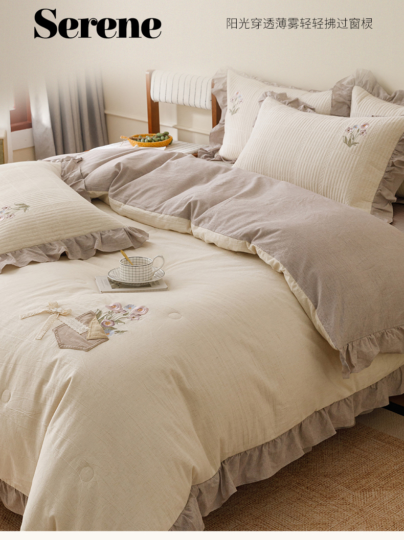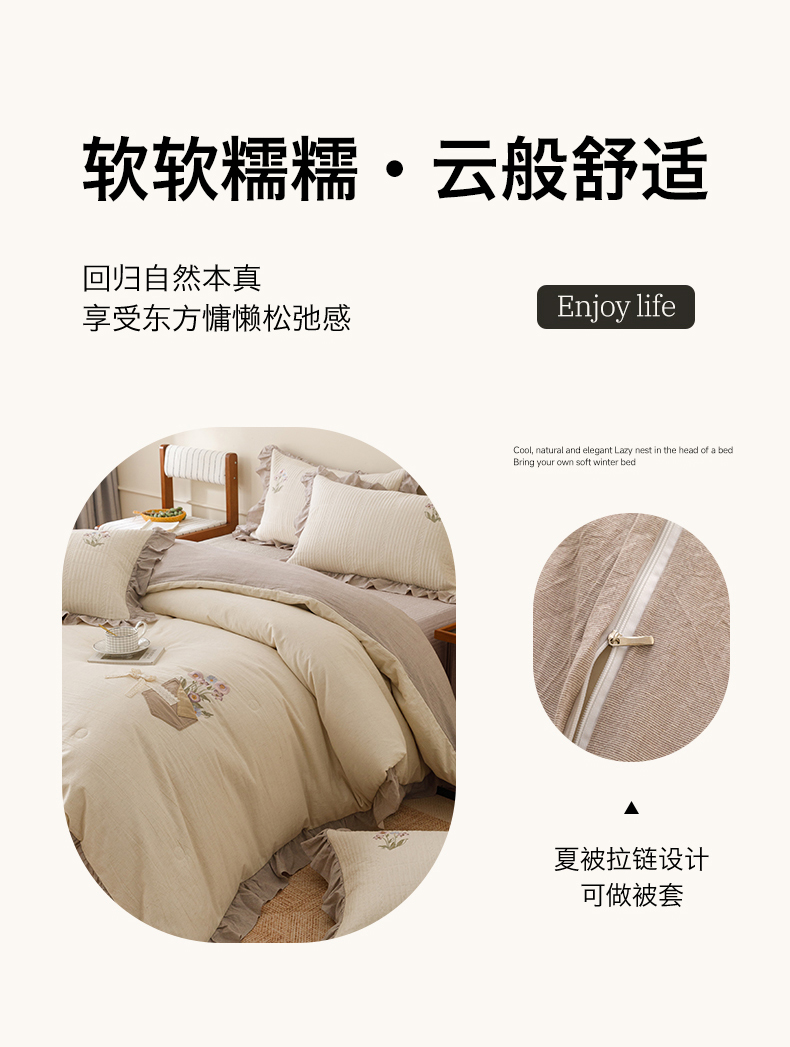 (总)瑞米家居 2026新款棉麻床盖夏被四件-森羽,森羽-灰,森羽-芥末绿,森羽-香芋紫,森羽-原白