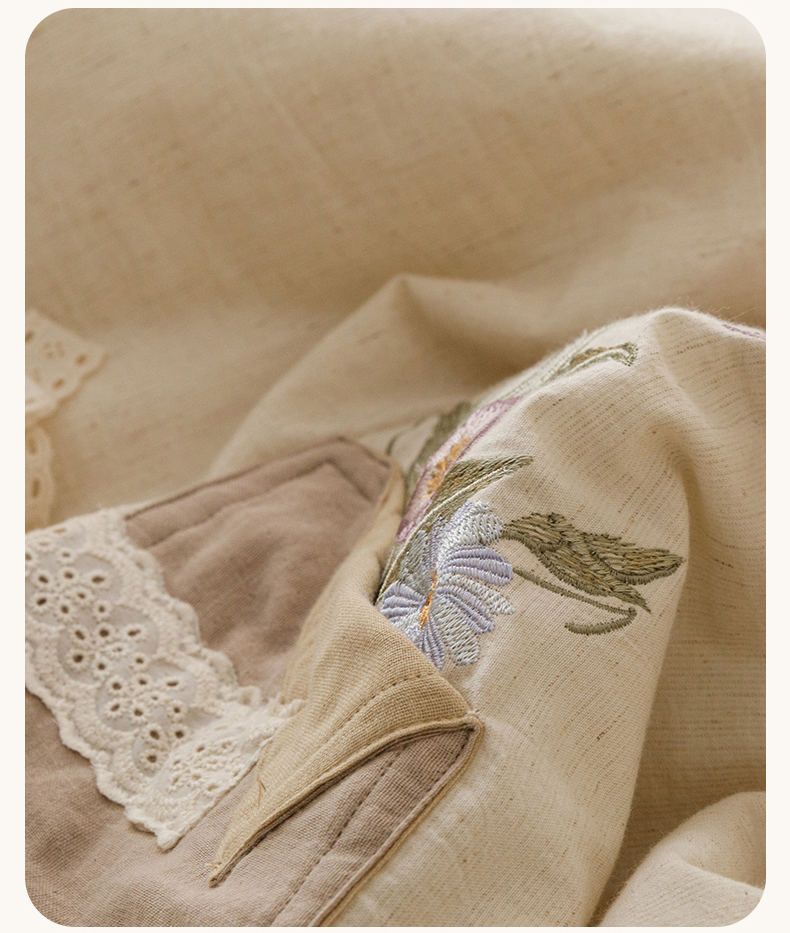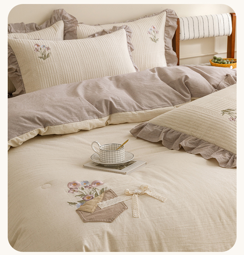 (总)瑞米家居 2026新款棉麻床盖夏被四件套-繁花,繁花-粉,繁花-芥末绿,繁花-香芋紫